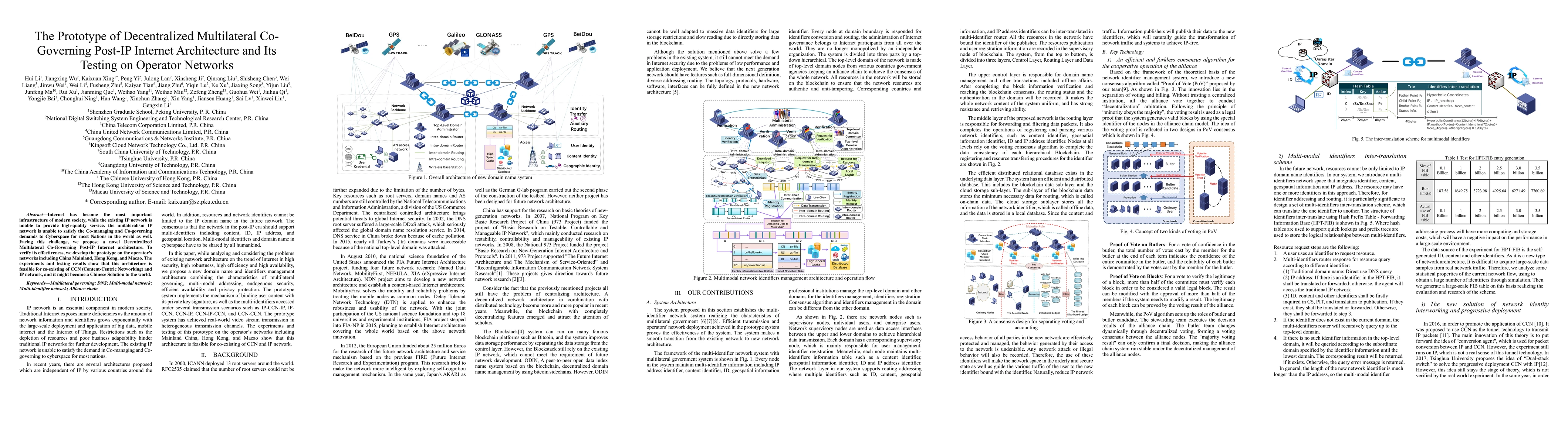 The Internet has become the most important infrastructure of modern society, while the existing IP network is unable to provide high-quality service. The unilateralism IP network is unable to satisfy the Co-managing and Co-governing demands to Cyberspace for most Nations in the world as well. Facing this challenge, we propose a novel Decentralized Multilateral Co-Governing Post-IP Internet architecture. To verify its effectiveness, we develop the prototype on the operator's networks including China Mainland, Hong Kong, and Macao. The experiments and testing results show that this architecture is feasible for co-existing of Content-Centric Networking and IP network, and it might become a Chinese Solution to the world.