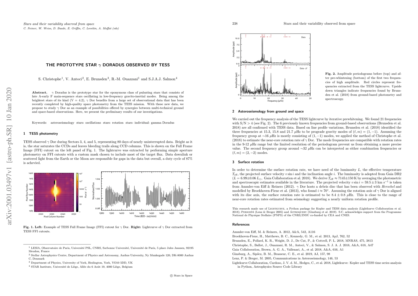 This paper investigates the prototype $\gamma$ Doradus star using high-quality TESS space photometry, aiming to explore synergies between ground and space-based observations. Preliminary results highlight the star's potential as a model for studying pulsating stars in the late A-early F main-sequence.