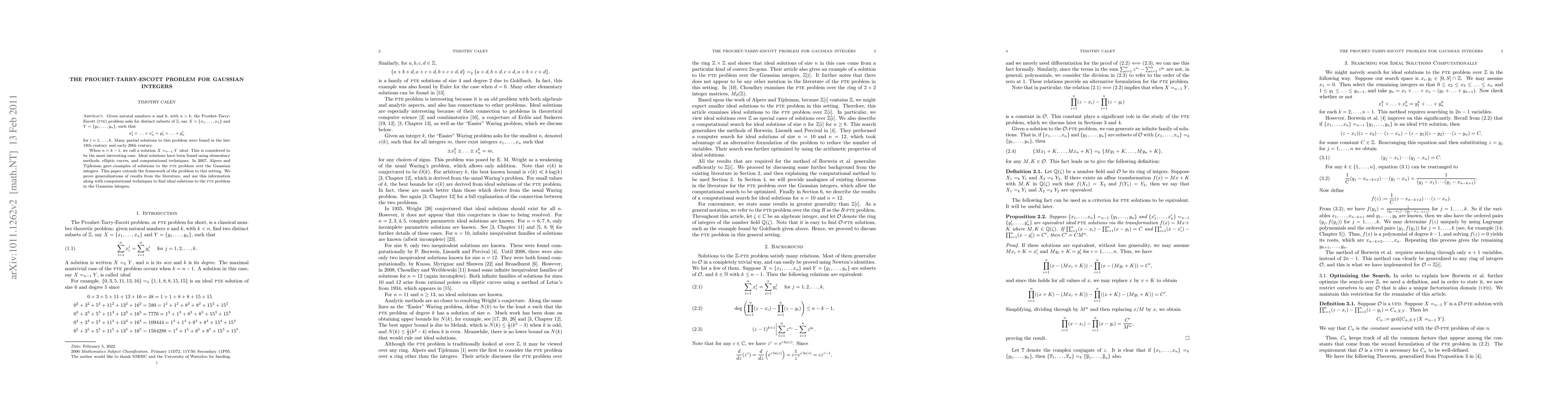 This paper extends the Prouhet-Tarry-Escott problem to Gaussian integers, proving generalizations of existing results and employing computational techniques to discover ideal solutions where $n=k-1$. This builds on prior work using various mathematical methods.