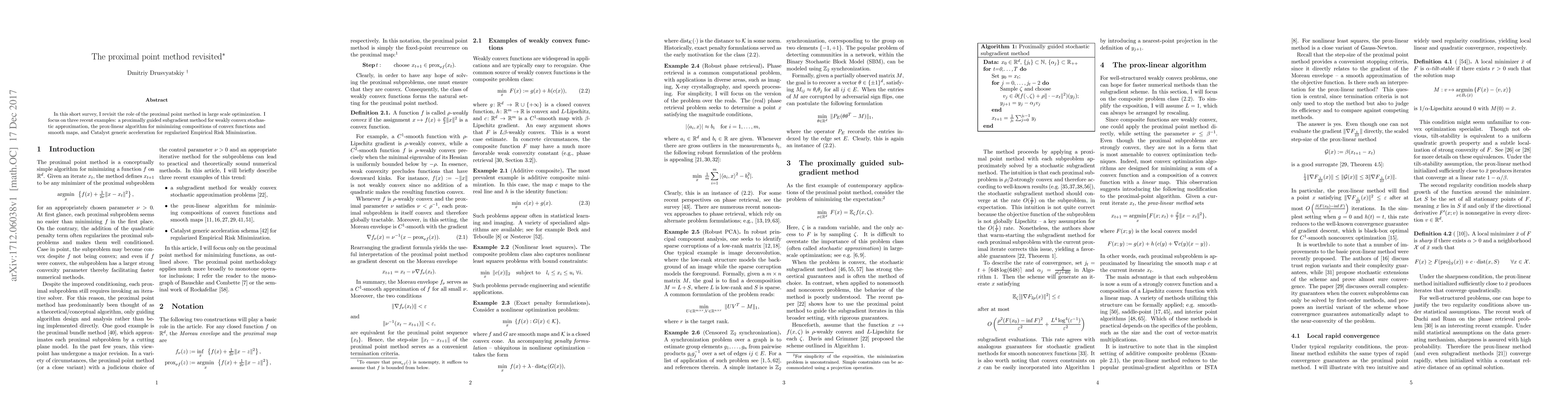 In this short survey, I revisit the role of the proximal point method in large scale optimization. I focus on three recent examples: a proximally guided subgradient method for weakly convex stochastic approximation, the prox-linear algorithm for minimizing compositions of convex functions and smooth maps, and Catalyst generic acceleration for regularized Empirical Risk Minimization.