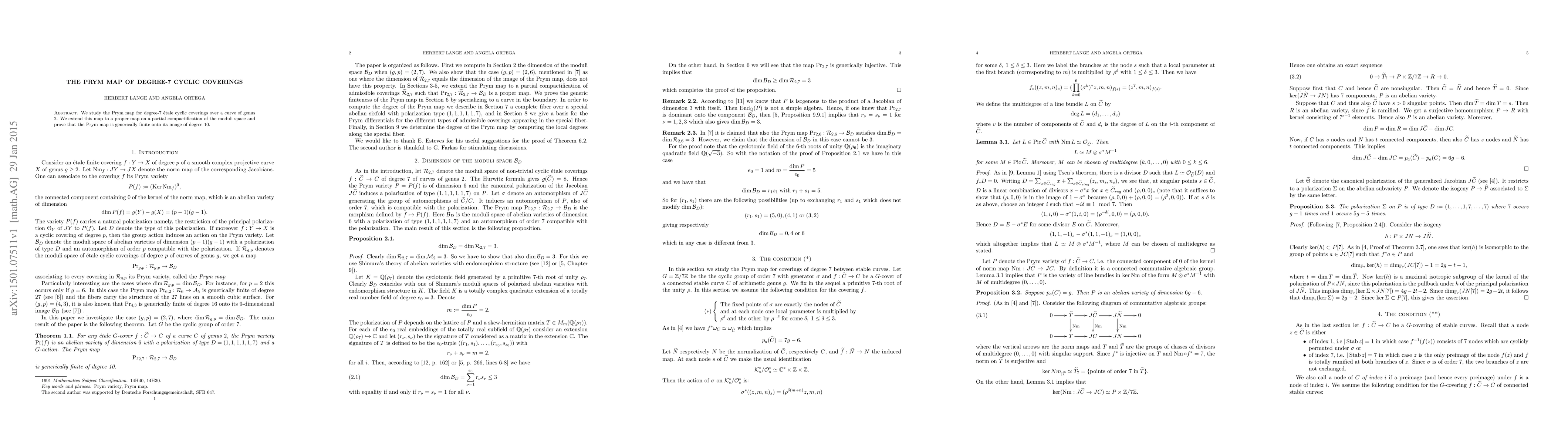 We study the Prym map for degree-7 etale cyclic coverings over a curve of genus 2. We extend this map to a proper map on a partial compactification of the moduli space of such coverings, and prove that the Prym map is generically finite onto its image of degree 10.