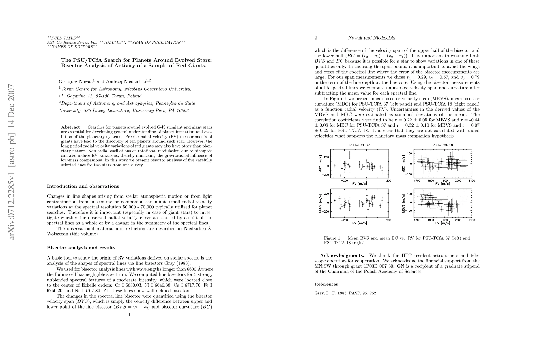 This study investigates planets around evolved G-K subgiant and giant stars using radial velocity measurements, focusing on bisector analysis to distinguish between planetary signals and other sources of radial velocity variations like non-radial oscillations or starspots. The analysis of two selected stars aims to refine the understanding of planet formation and evolution in these systems.