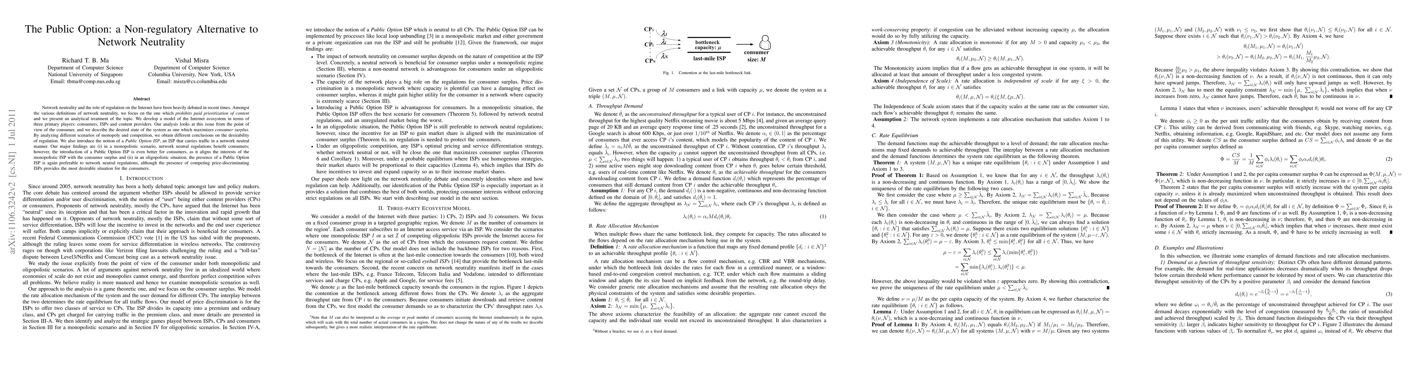 A research paper examines the role of regulation in ensuring network neutrality, proposing a 'Public Option' ISP that prioritizes consumer interests over profit, finding it more beneficial for consumers than traditional regulations.