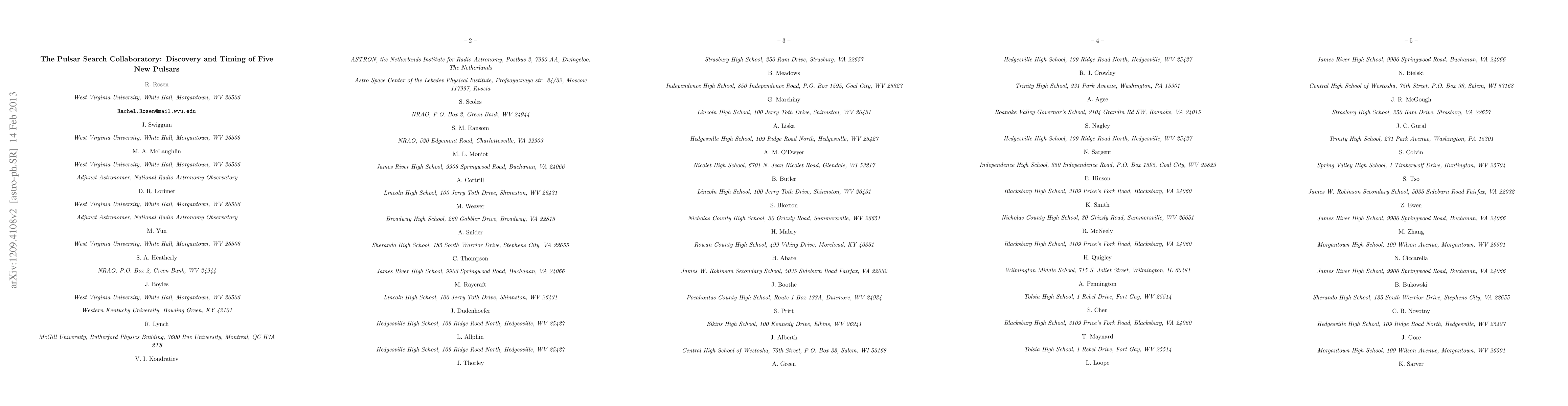 The Pulsar Search Collaboratory, a joint NSF-funded program between the National Radio Astronomy Observatory and West Virginia University, has discovered five new pulsars through student-led analysis of 300 hours of data from the Green Bank Telescope. This initiative aims to engage high-school students in STEM fields by involving them in cutting-edge pulsar research.