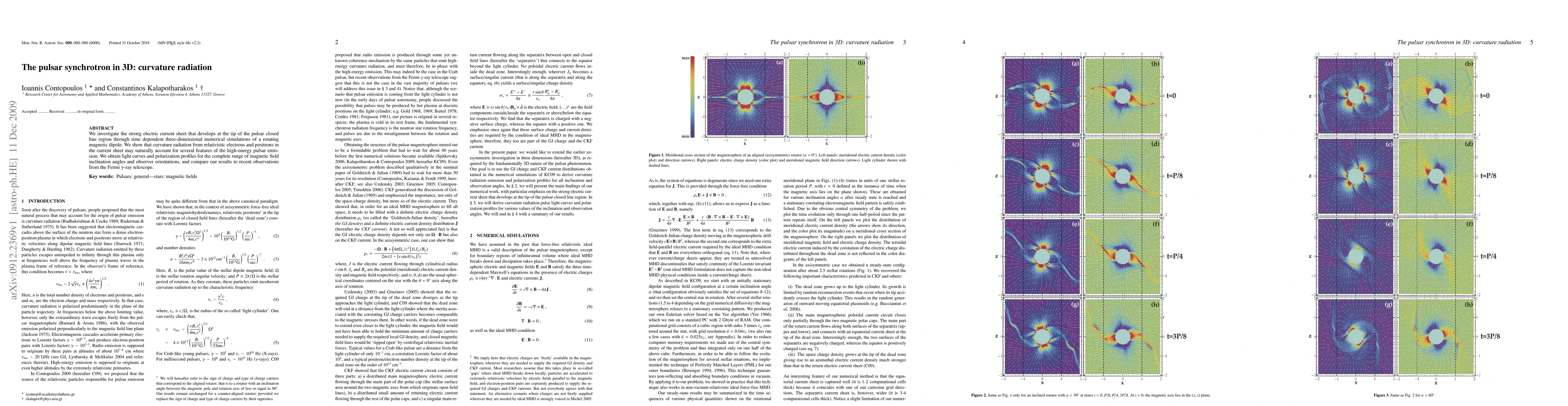 We investigate the strong electric current sheet that develops at the tip of the pulsar closed line region through time dependent three-dimensional numerical simulations of a rotating magnetic dipole. We show that curvature radiation from relativistic electrons and positrons in the current sheet may naturally account for several features of the high-energy pulsar emission. We obtain light curves and polarization profiles for the complete range of magnetic field inclination angles and observer orientations, and compare our results to recent observations from the Fermi gamma-ray telescope.