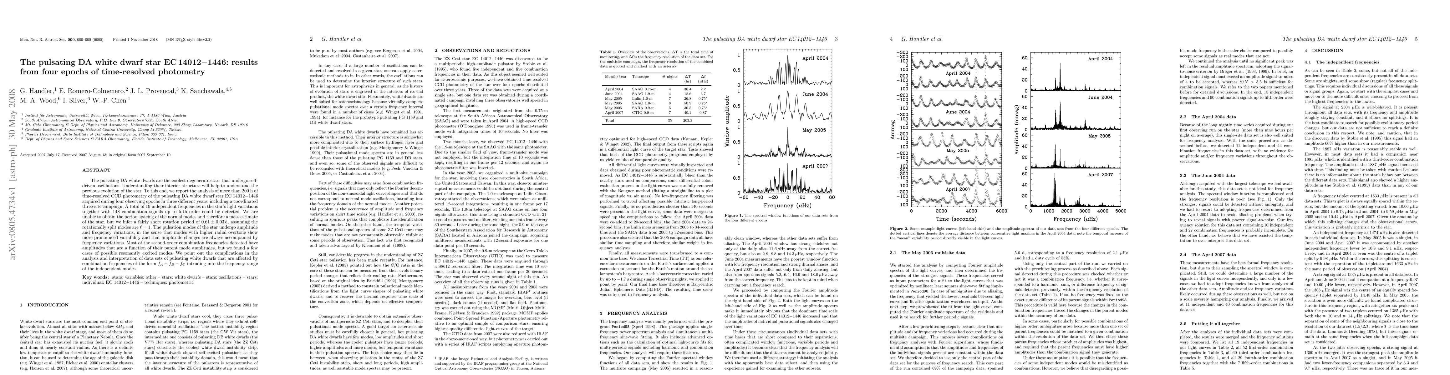 This study analyzes over 200 hours of time-resolved photometry of the pulsating DA white dwarf EC 14012-1446, detecting 19 independent frequencies and 148 combination signals. Despite the complexity, the star's pulsation modes show amplitude and frequency variations, with higher radial overtones exhibiting more pronounced changes.