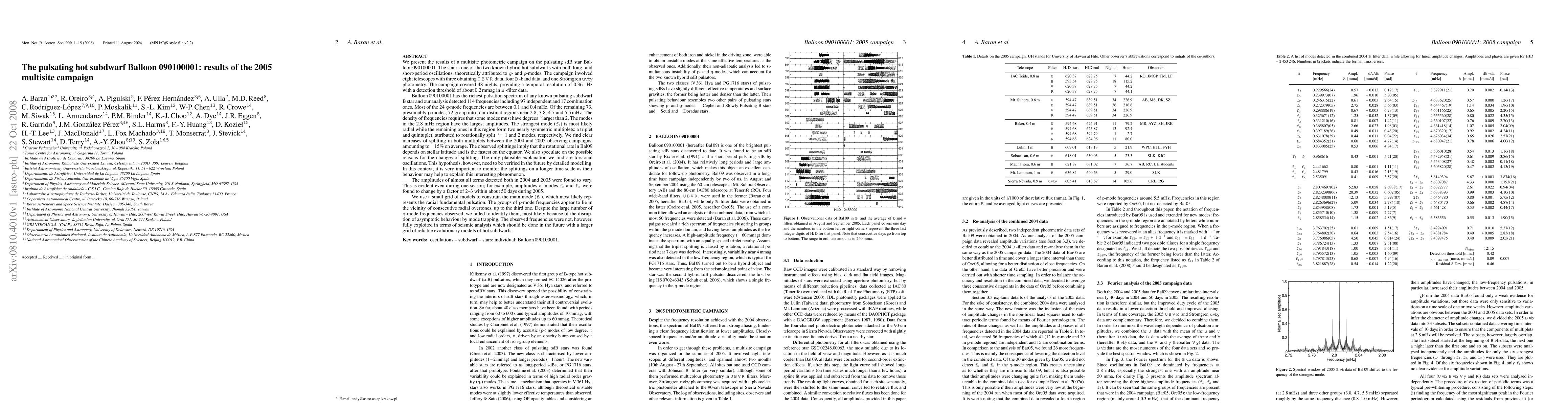 We present the results of a multisite photometric campaign on the pulsating sdB star Balloon 090100001. The star is one of the two known hybrid hot subdwarfs with both long- and short-period oscillations. The campaign involved eight telescopes with three obtaining UBVR data, four B-band data, and one Stromgren uvby photometry. The campaign covered 48 nights, providing a temporal resolution of 0.36microHz with a detection threshold of about 0.2mmag in B-filter data. Balloon 090100001 has the richest pulsation spectrum of any known pulsating subdwarf B star and our analysis detected 114 frequencies including 97 independent and 17 combination ones. The strongest mode (f_1) in the 2.8mHz region is most likely radial while the remaining ones in this region form two nearly symmetric multiplets: a triplet and quintuplet, attributed to rotationally split \ell=1 and 2 modes, respectively. We find clear increases of splitting in both multiplets between the 2004 and 2005 observing campaigns, amounting to 15% on average. The observed splittings imply that the rotational rate in Bal09 depends on stellar latitude and is the fastest on the equator. We use a small grid of models to constrain the main mode (f_1), which most likely represents the radial fundamental pulsation. The groups of p-mode frequencies appear to lie in the vicinity of consecutive radial overtones, up to the third one. Despite the large number of g-mode frequencies observed, we failed to identify them, most likely because of the disruption of asymptotic behaviour by mode trapping. The observed frequencies were not, however, fully exploited in terms of seismic analysis which should be done in the future with a larger grid of reliable evolutionary models of hot subdwarfs.