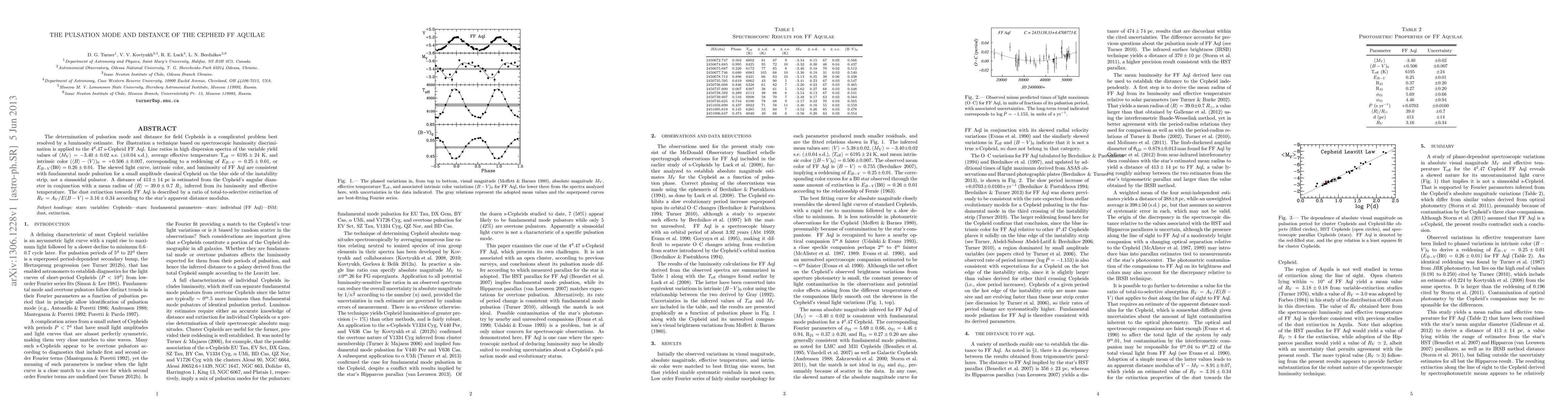 Researchers used spectroscopic data to estimate the distance of FF Aql, a Cepheid variable star, and found it to be approximately 413 light-years away with an uncertainty of 14 light-years. The study's findings suggest that the star is likely in its fundamental mode of pulsation.