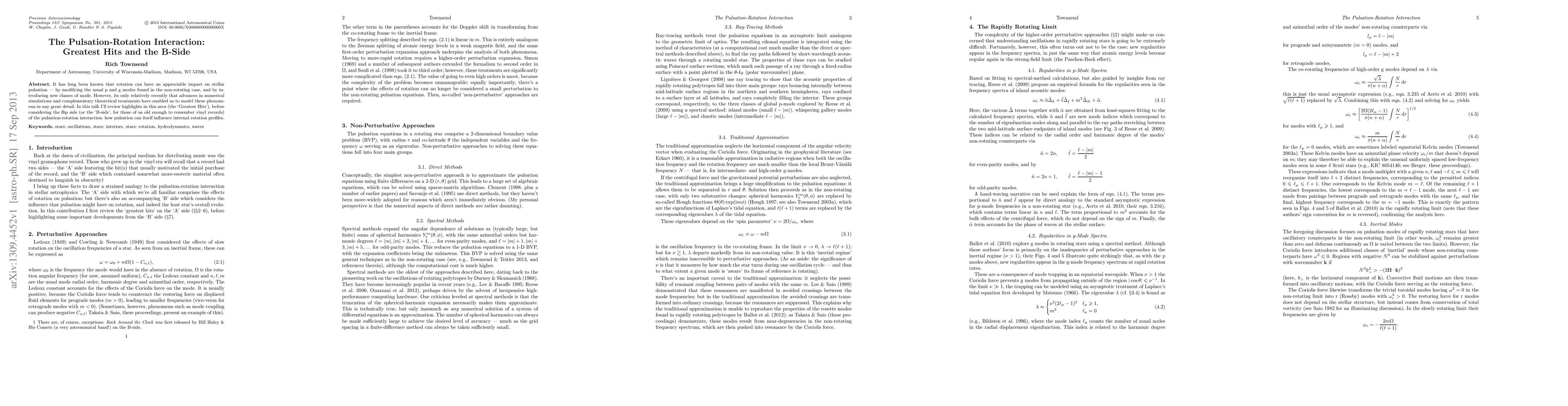 It has long been known that rotation can have an appreciable impact on stellar pulsation --- by modifying the usual p and g modes found in the non-rotating case, and by introducing new classes of mode. However, it's only relatively recently that advances in numerical simulations and complementary theoretical treatments have enabled us to model these phenomena in any great detail. In this talk I'll review highlights in this area (the 'Greatest Hits'), before considering the flip side (or the 'B-side', for those of us old enough to remember vinyl records) of the pulsation-rotation interaction: how pulsation can itself influence internal rotation profiles.