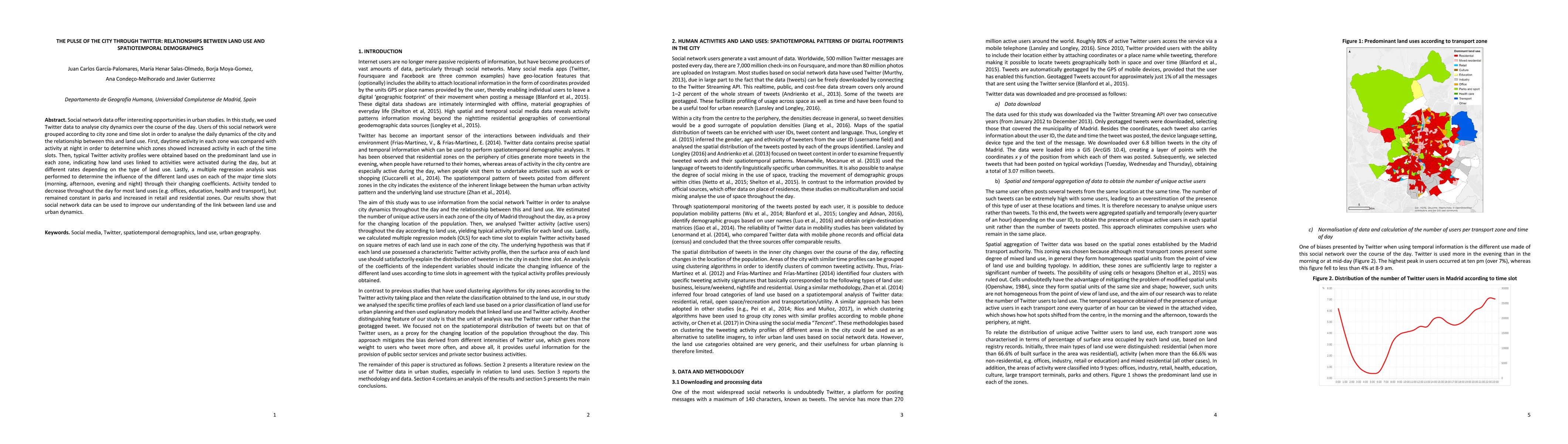 This study uses Twitter data to analyze city dynamics and the relationship between land use and spatiotemporal demographics, revealing how different land uses influence activity patterns across various time slots, with notable variations in activity levels between commercial, residential, and recreational zones.