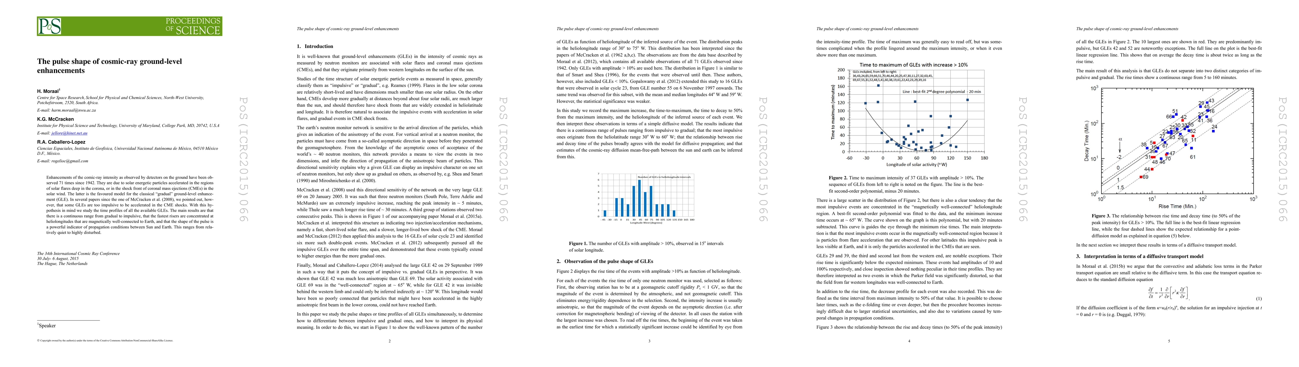 Enhancements of the comic-ray intensity as observed by detectors on the ground have been observed 71 times since 1942. They are due to solar energetic particles accelerated in the regions of solar flares deep in the corona, or in the shock front of coronal mass ejections (CMEs) in the solar wind. The latter is the favoured model for the classical gradual ground-level enhancement (GLE). In several papers since the one of McCracken et al. (2008), we pointed out, however, that some GLEs are too impulsive to be accelerated in the CME shocks. With this hypothesis in mind we study the time profiles of all the available GLEs. The main results are that there is a continuous range from gradual to impulsive, that the fastest risers are concentrated at heliolongitudes that are magnetically well-connected to Earth, and that the shape of the pulse is a powerful indicator of propagation conditions between Sun and Earth. This ranges from relatively quiet to highly disturbed.