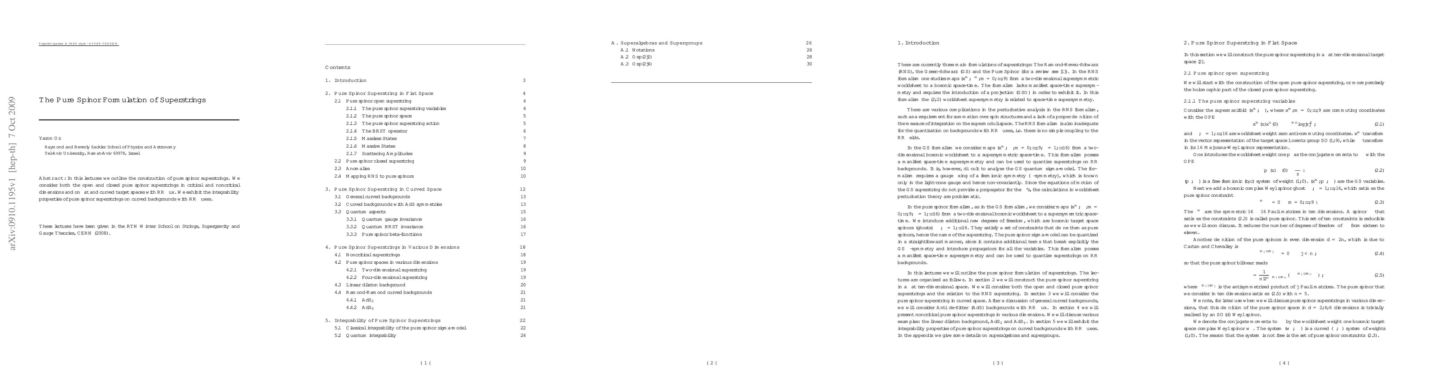 This paper presents a detailed construction of pure spinor superstring theories, including both open and closed string types in various dimensions and target spaces, with a focus on their integrability properties under RR flux conditions. The study highlights the mathematical framework and physical implications of these advanced superstring models.