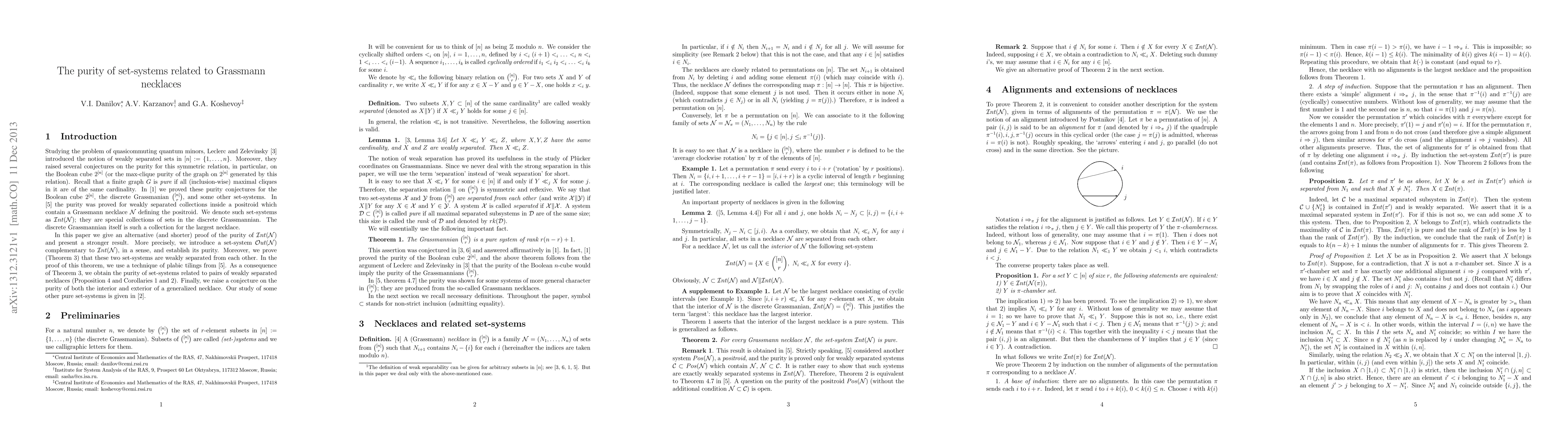 This paper provides an alternative proof for the purity of set-systems related to Grassmann necklaces, introducing a complementary set-system and proving its purity. It also establishes the weak separation of these two set-systems and conjectures the purity of generalized necklaces.