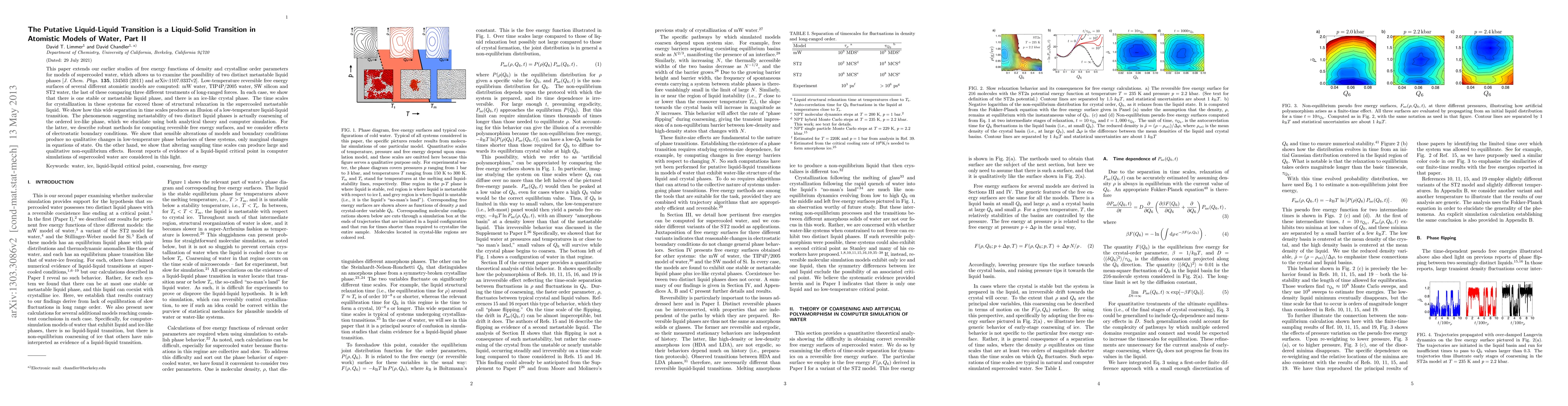 This paper extends our earlier studies of free energy functions of density and crystalline order parameters for models of supercooled water, which allows us to examine the possibility of two distinct metastable liquid phases [J. Chem. Phys. 135, 134503 (2011) and arXiv:1107.0337v2]. Low-temperature reversible free energy surfaces of several different atomistic models are computed: mW water, TIP4P/2005 water, SW silicon and ST2 water, the last of these comparing three different treatments of long-ranged forces. In each case, we show that there is one stable or metastable liquid phase, and there is an ice-like crystal phase. The time scales for crystallization in these systems far exceed those of structural relaxation in the supercooled metastable liquid. We show how this wide separation in time scales produces an illusion of a low-temperature liquid-liquid transition. The phenomenon suggesting metastability of two distinct liquid phases is actually coarsening of the ordered ice-like phase, which we elucidate using both analytical theory and computer simulation. For the latter, we describe robust methods for computing reversible free energy surfaces, and we consider effects of electrostatic boundary conditions. We show that sensible alterations of models and boundary conditions produce no qualitative changes in low-temperature phase behaviors of these systems, only marginal changes in equations of state. On the other hand, we show that altering sampling time scales can produce large and qualitative nonequilibrium effects. Recent reports of evidence of a liquid-liquid critical point in computer simulations of supercooled water are considered in this light.