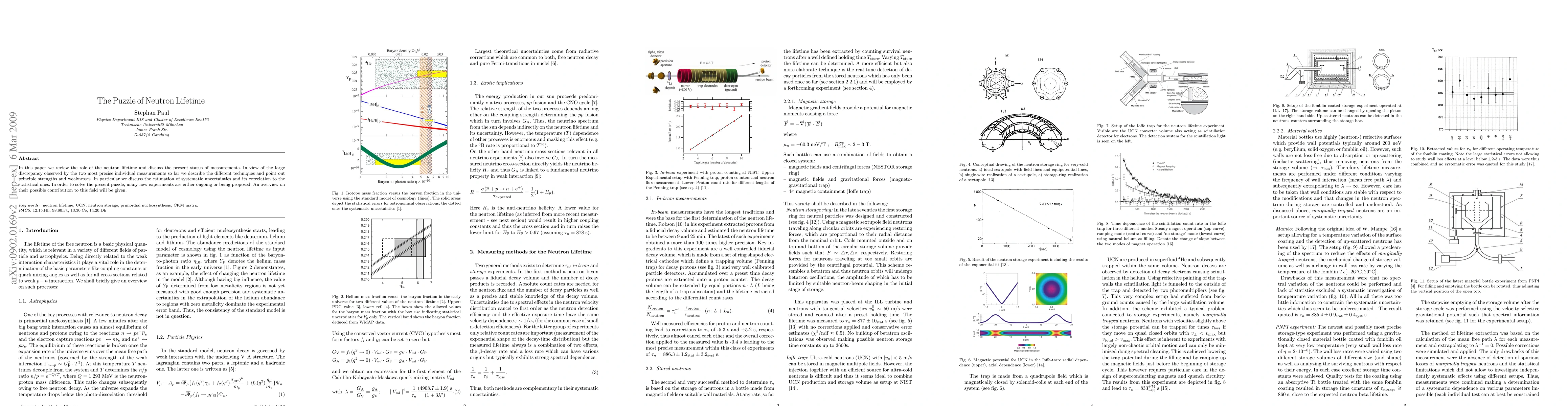This paper reviews neutron lifetime measurements and highlights the discrepancy between the two most precise results, analyzing techniques and uncertainties. It also discusses ongoing and proposed experiments aiming to resolve this puzzle.