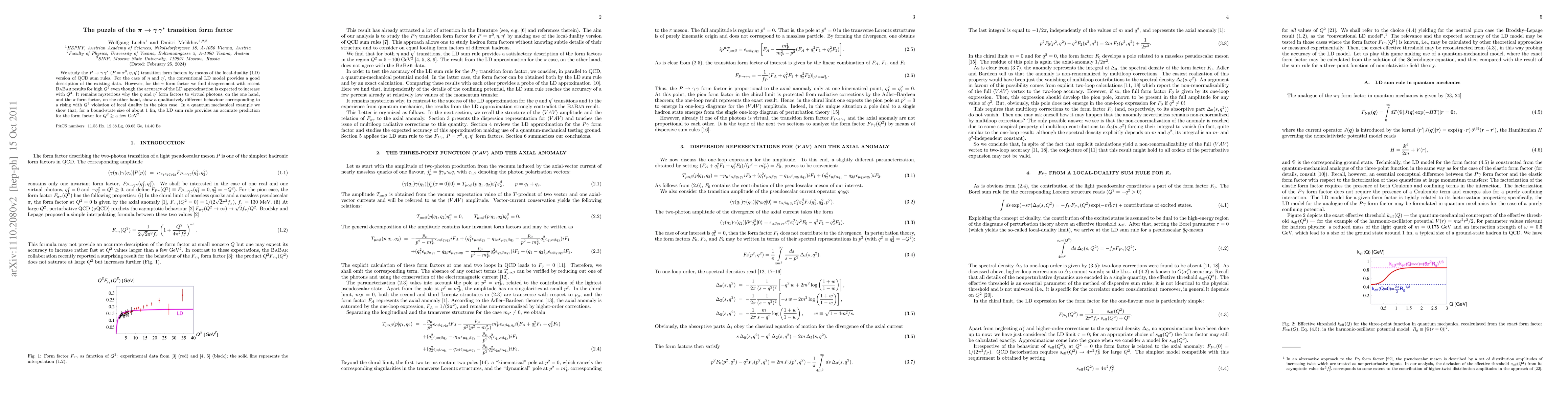 This paper investigates the transition form factors for $P\to\gamma\,\gamma^*$ ($P=\pi^0,\eta,\eta'$) using QCD sum rules, finding good agreement for $\eta$ and $\eta'$ but a discrepancy for $\pi$ with recent BaBar results, especially at high $Q^2$, despite expected accuracy improvements. The differing behavior between $\pi$ and other mesons remains unexplained.