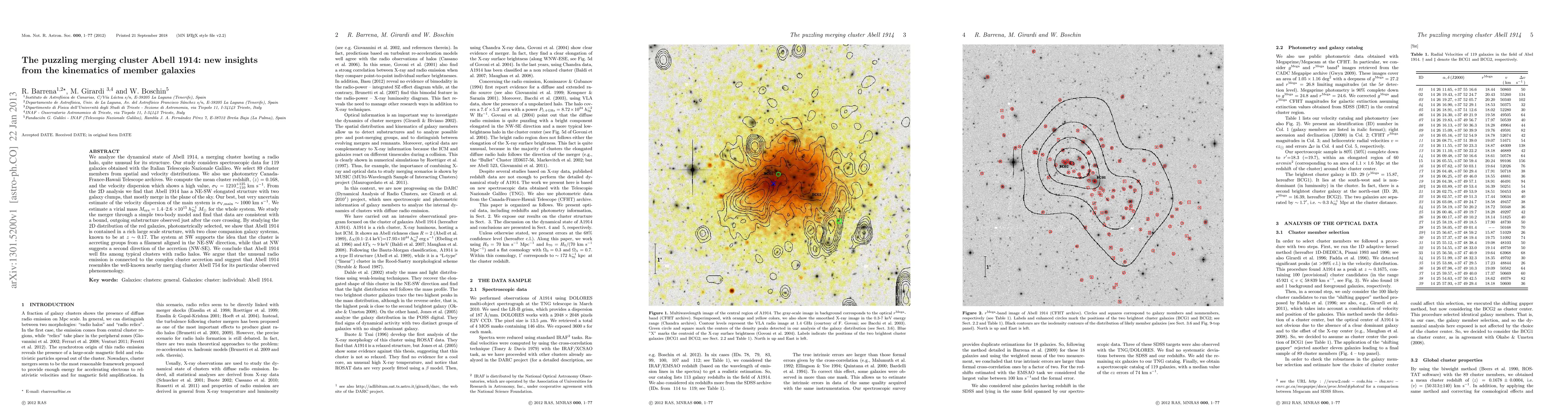 We analyze the dynamical state of Abell 1914, a merging cluster hosting a