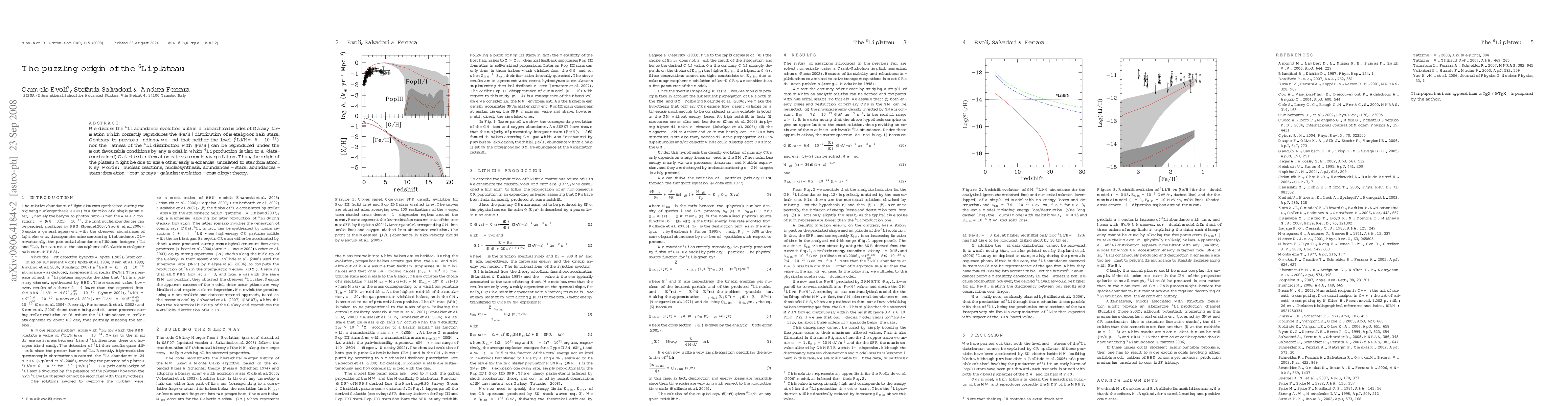 The study challenges the prevailing theory linking the 6Li abundance plateau in the Galaxy to cosmic ray spallation tied to star formation. Despite accurately modeling the [Fe/H] distribution, no model could reproduce the constant 6Li/H level (6x10^-12) across various [Fe/H]. The authors suggest an alternative, yet unidentified, early mechanism as the origin of this plateau.