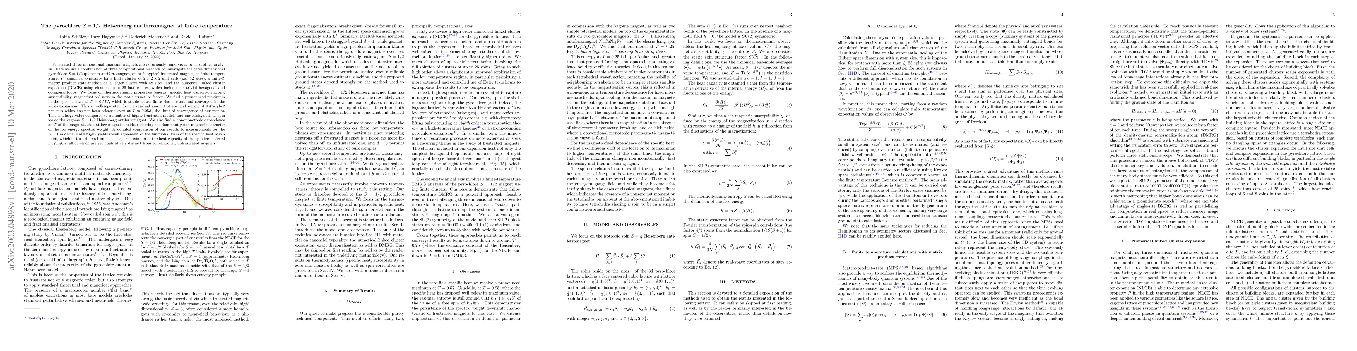 This paper investigates the thermodynamic properties of a three-dimensional pyrochlore $S=1/2$ quantum antiferromagnet using multiple computational methods. It reveals a significant peak in specific heat at $T = 0.57 J$, indicating a distinct phase transition, and finds a substantial residual spectral weight even at low temperatures, highlighting the system's highly frustrated nature.