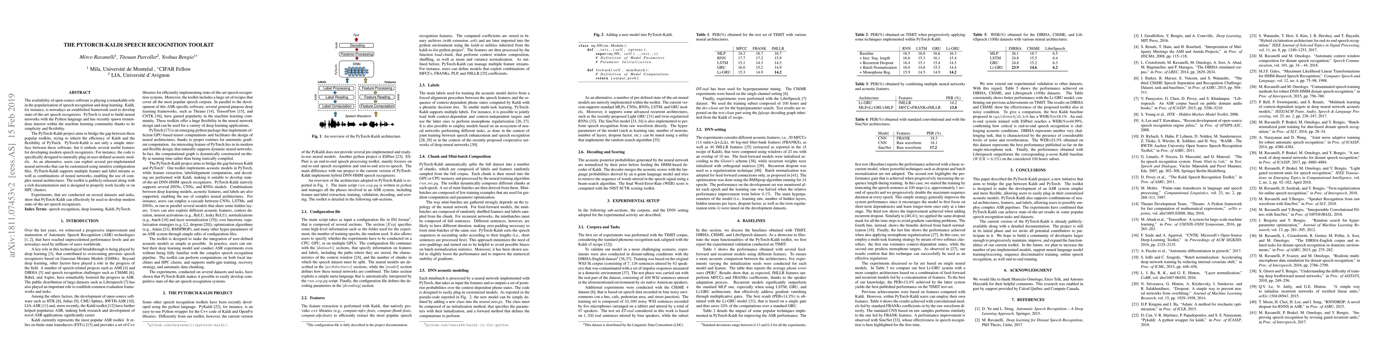 The PyTorch-Kaldi toolkit merges the efficiency of Kaldi and the flexibility of PyTorch to develop advanced speech recognizers, offering customizable neural networks and support for complex architectures, as demonstrated by successful experiments on various datasets.