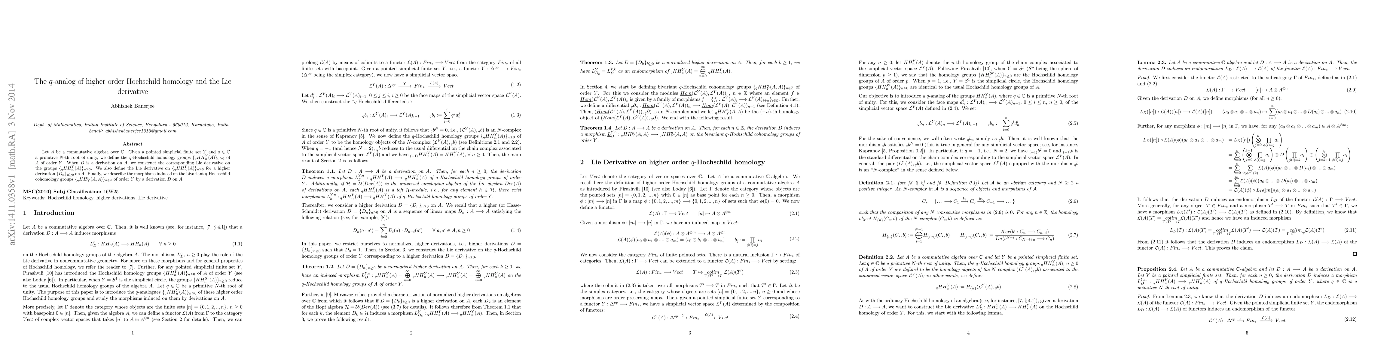 Let $A$ be a commutative algebra over $\mathbb C$. Given a pointed simplicial finite set $Y$ and $q\in \mathbb C$ a primitive $N$-th root of unity, we define the $q$-Hochschild homology groups of $A$ of order $Y$. When $D$ is a derivation on $A$, we construct the corresponding Lie derivative on these groups. We also define the Lie derivative for a higher derivation $\{D_n\}_{n\geq 0}$ on $A$. Finally, we describe the morphisms induced on the bivariant $q$-Hochschild cohomology groups of order $Y$ by a derivation $D$ on $A$.
