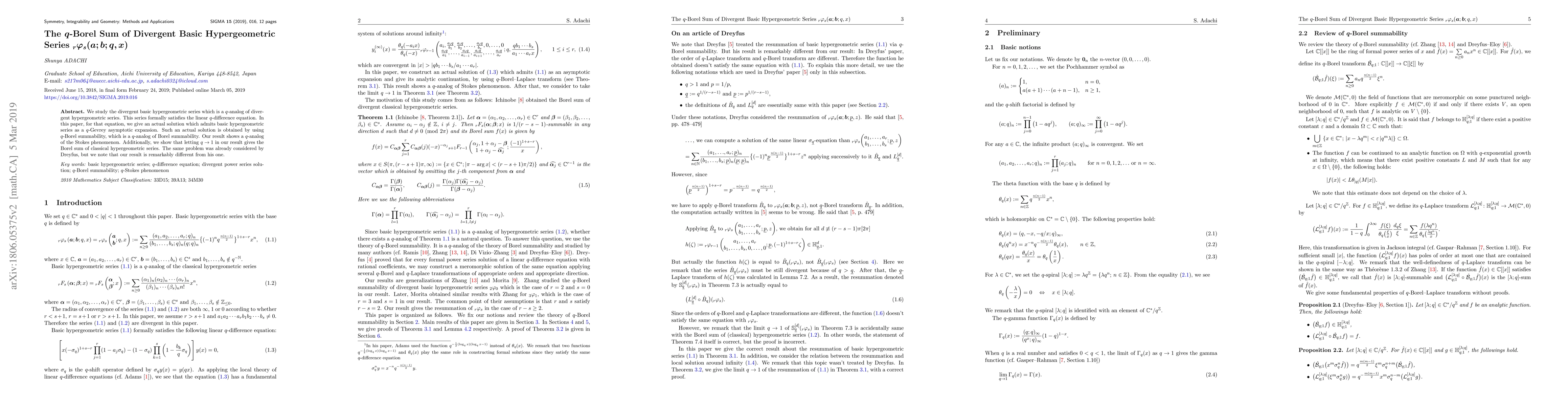 This paper explores the $q$-Borel sum of divergent basic hypergeometric series, providing an actual solution using $q$-Borel summability. It reveals a $q$-analog of the Stokes phenomenon and shows that letting $q \to 1$ recovers the Borel sum of classical hypergeometric series, differing significantly from previous results by Dreyfus.