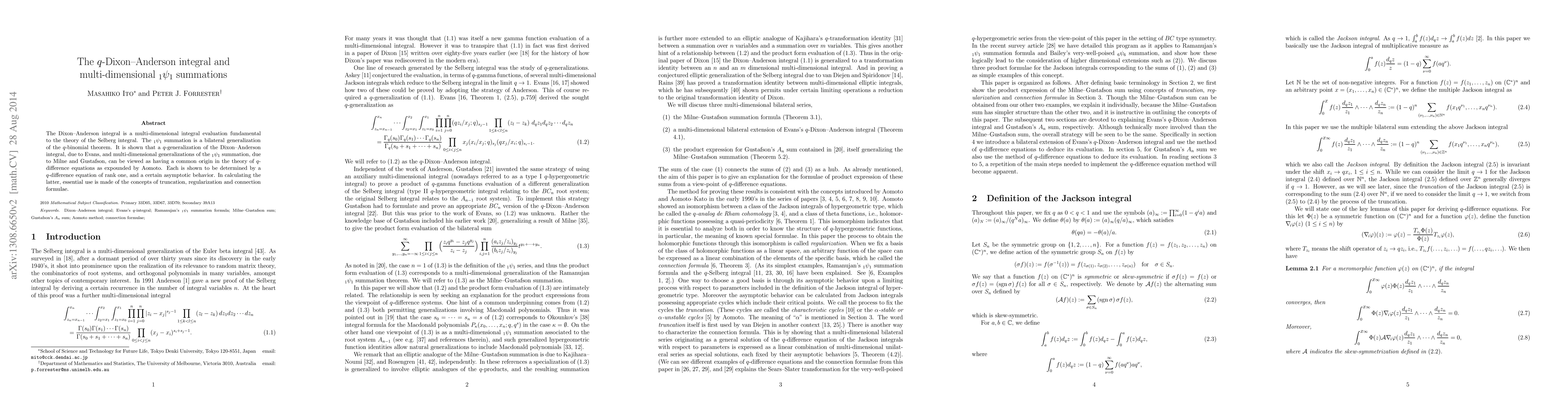 The paper presents a detailed analysis of the $q$-Dixon–Anderson integral and its relation to multi-dimensional $_1\psi_1$ summations, providing a unified framework based on $q$-difference equations.