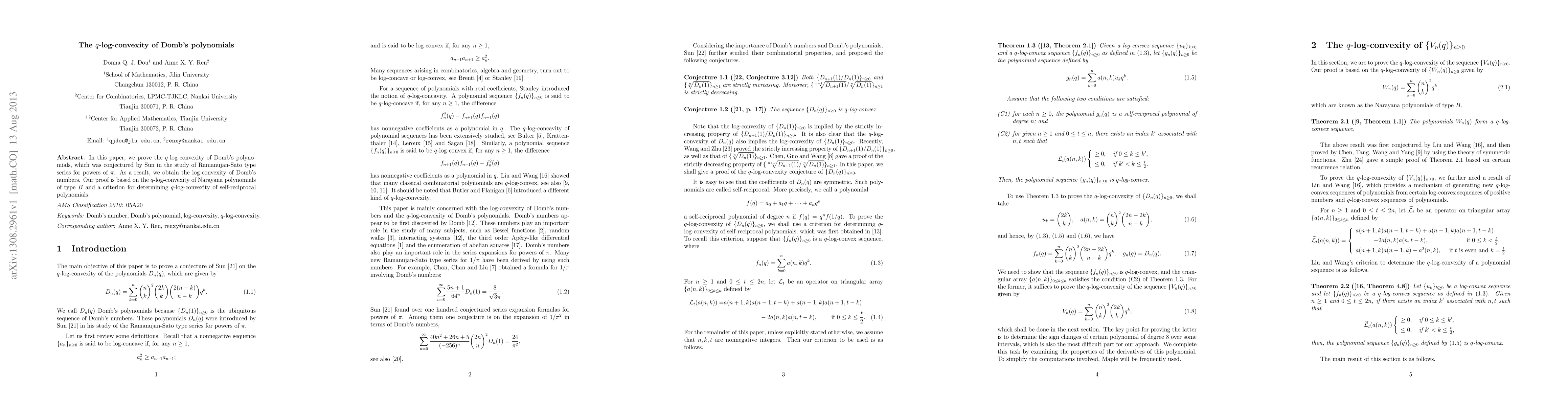 This paper establishes the $q$-log-convexity of Domb's polynomials, confirming a conjecture by Sun related to Ramanujan-Sato series for powers of $\pi$. The proof leverages the $q$-log-convexity of Narayana polynomials and a criterion for self-reciprocal polynomials.