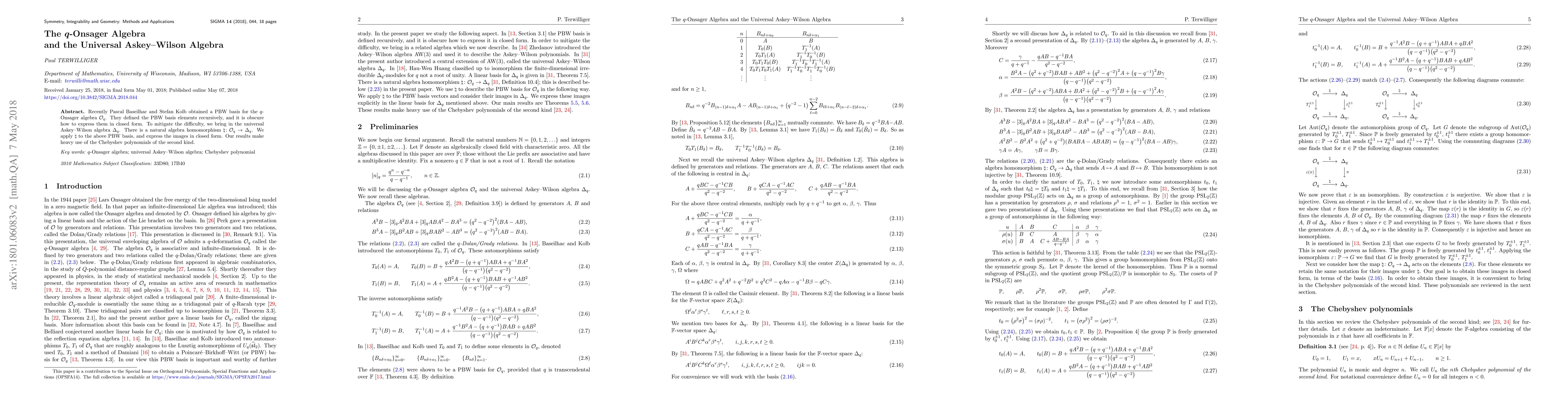 Recently Pascal Baseilhac and Stefan Kolb obtained a PBW basis for the $q$-Onsager algebra $\mathcal O_q$. They defined the PBW basis elements recursively, and it is obscure how to express them in closed form. To mitigate the difficulty, we bring in the universal Askey-Wilson algebra $\Delta_q$. There is a natural algebra homomorphism $\natural \colon \mathcal O_q \to \Delta_q$. We apply $\natural $ to the above PBW basis, and express the images in closed form. Our results make heavy use of the Chebyshev polynomials of the second kind.