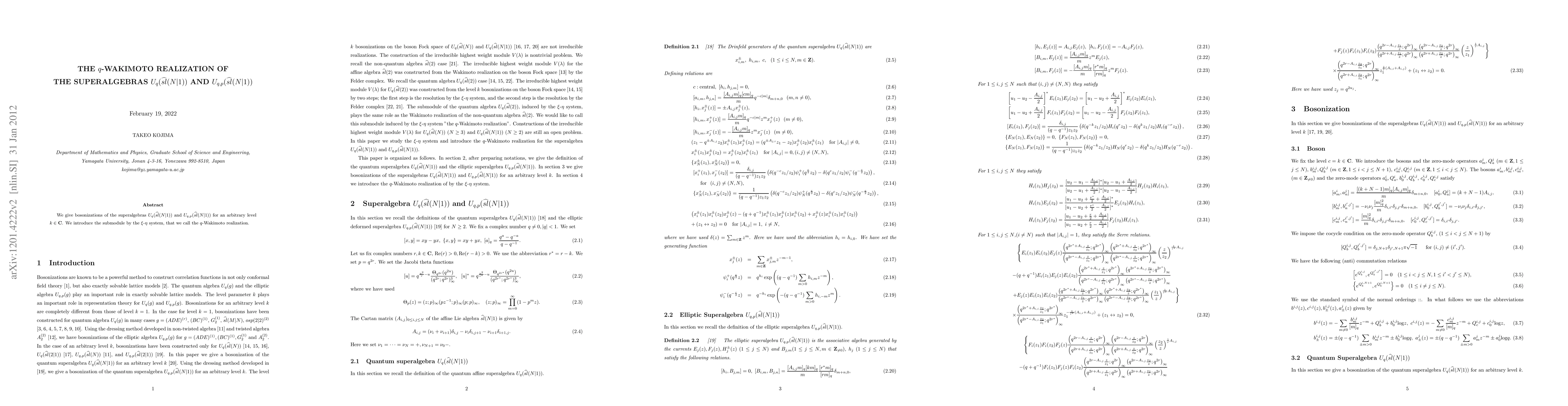 We give bosonizations of the superalgebras $U_q(\hat{sl}(N|1))$ and $U_{q,p}(\hat{sl}(N|1))$ for an arbitrary level $k \in {\bf C}$. We introduce the submodule by the $\xi$-$\eta$ system, that we call the $q$-Wakimoto realization.