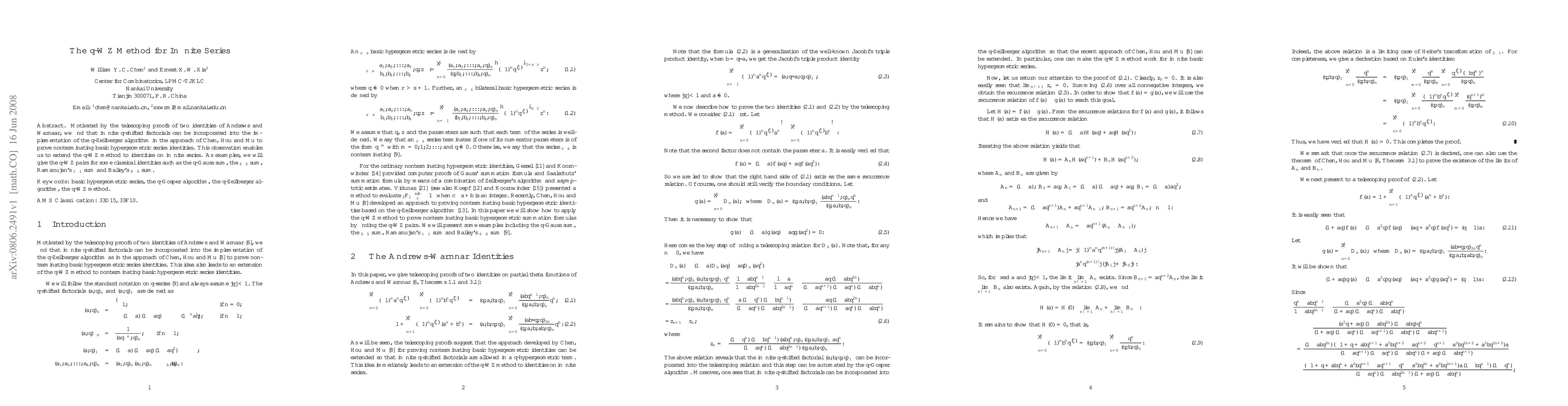 The paper extends the q-WZ method to prove identities for infinite series by incorporating q-shifted factorials into the q-Zeilberger algorithm. Examples include classical identities like the q-Gauss sum and Bailey's $_6\psi_6$ sum.