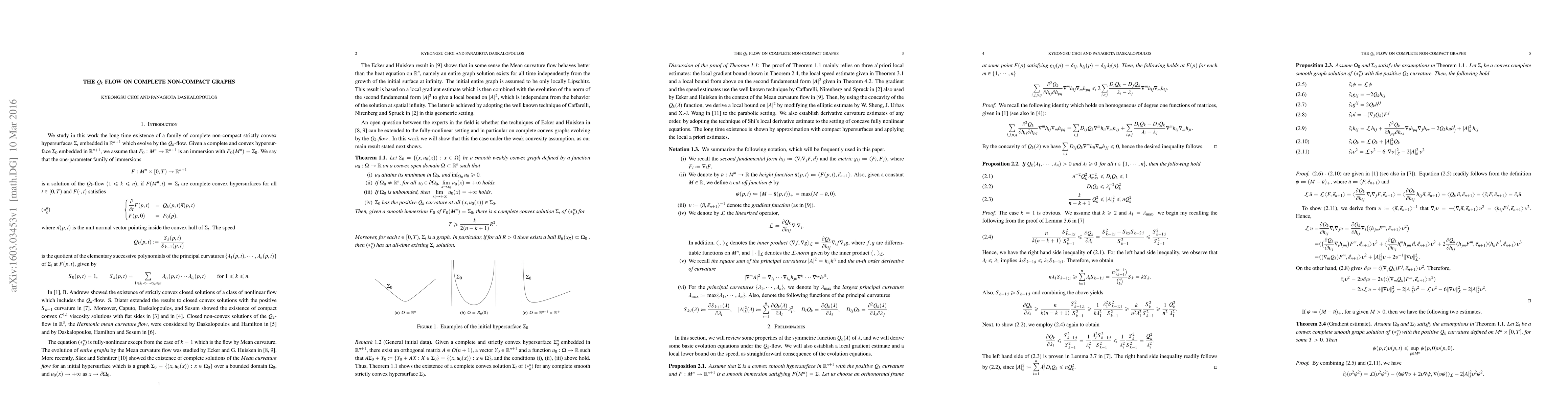 We consider the $Q_k$ flow on complete non-compact graphs. We prove that a complete graph evolves by the $Q_k$ curvature up to some time $T$ depending on the radius of a sphere enclosed by the initial graph.