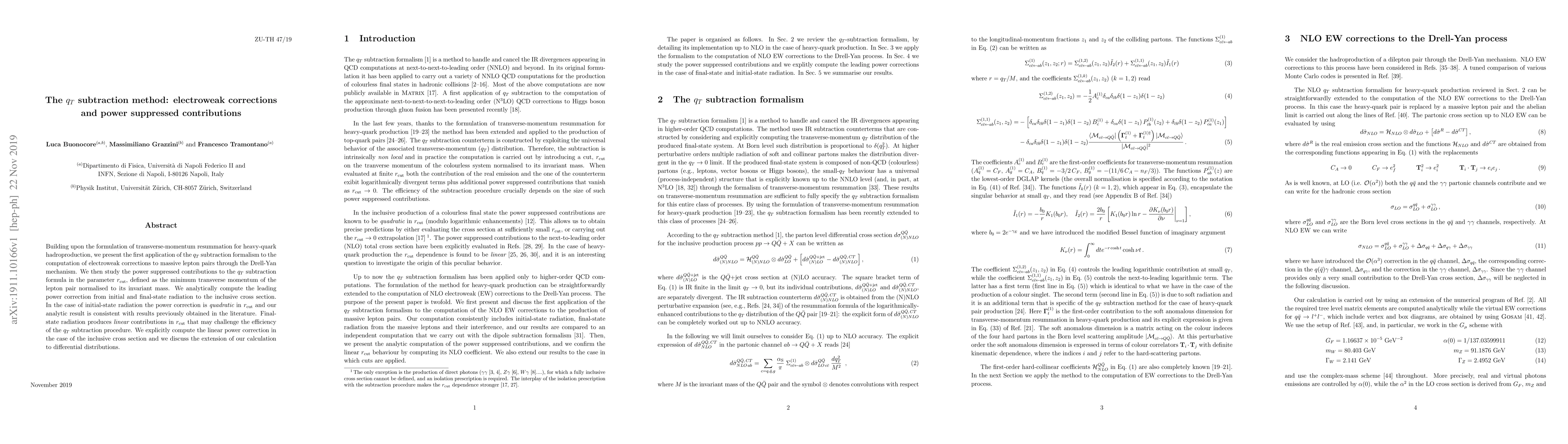 Building upon the formulation of transverse-momentum resummation for heavy-quark hadroproduction, we present the first application of the $q_T$ subtraction formalism to the computation of electroweak corrections to massive lepton pairs through the Drell-Yan mechanism. We then study the power suppressed contributions to the $q_T$ subtraction formula in the parameter $r_{cut}$, defined as the minimum transverse momentum of the lepton pair normalised to its invariant mass. We analytically compute the leading power correction from initial and final-state radiation to the inclusive cross section. In the case of initial-state radiation the power correction is quadratic in $r_{cut}$ and our analytic result is consistent with results previously obtained in the literature. Final-state radiation produces linear contributions in $r_{cut}$ that may challenge the efficiency of the $q_T$ subtraction procedure. We explicitly compute the linear power correction in the case of the inclusive cross section and we discuss the extension of our calculation to differential distributions.