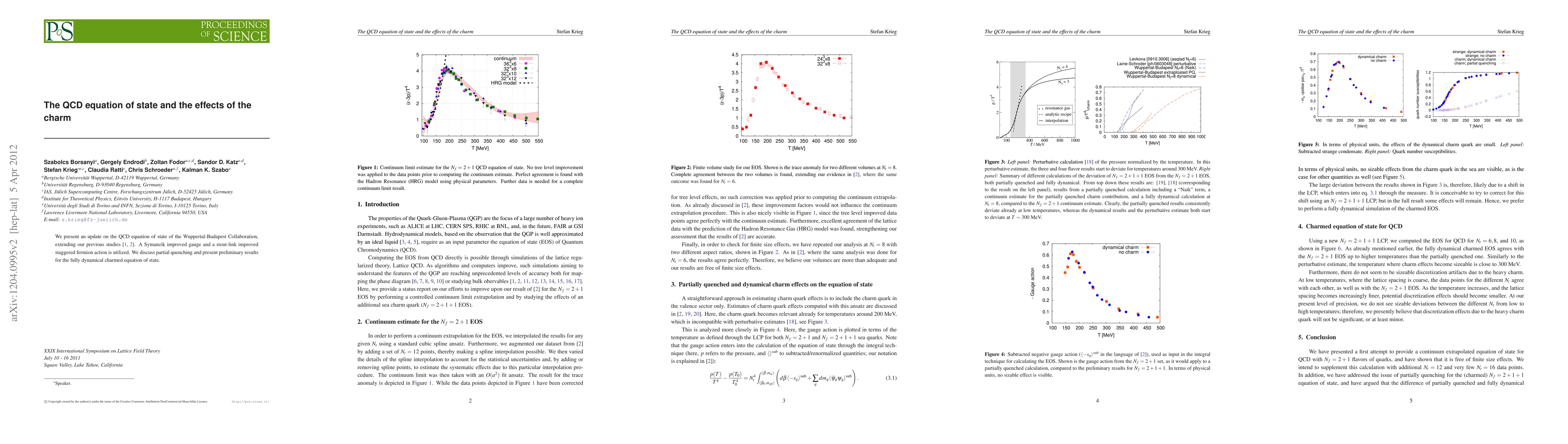 We present an update on the QCD equation of state of the Wuppertal-Budapest Collaboration, extending our previous studies [JHEP 0601 (2006) 089, JHEP 1011 (2010) 077]. A Symanzik improved gauge and a stout-link improved staggered fermion action is utilized. We discuss partial quenching and present preliminary results for the fully dynamical charmed equation of state.