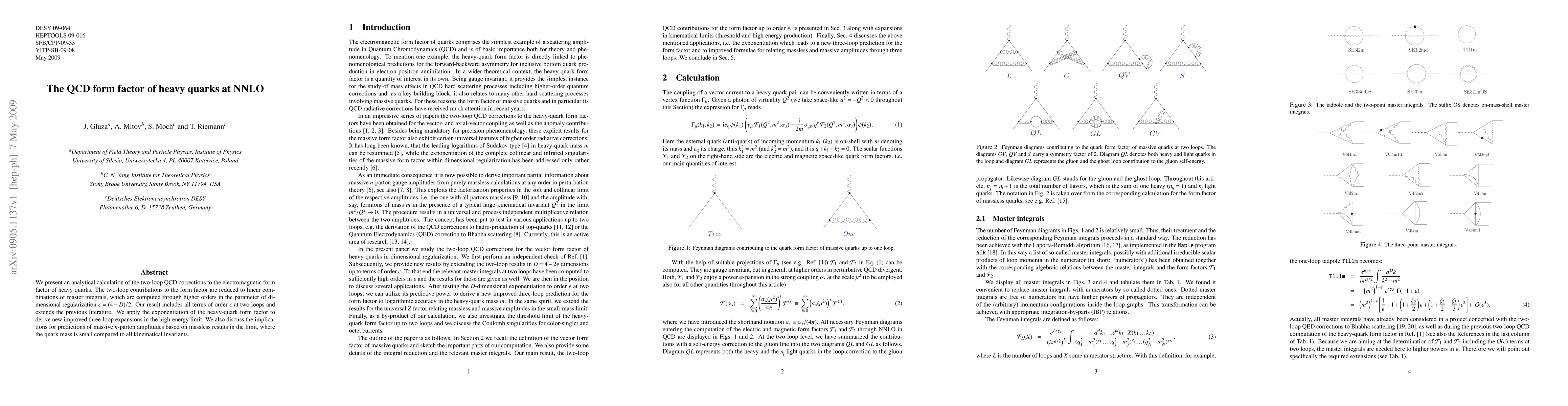 This research calculates the two-loop QCD corrections to the electromagnetic form factor of heavy quarks, expressing them as combinations of master integrals computed to higher orders. It extends previous work by including all epsilon terms at two loops, and applies exponentiation for new high-energy limit expansions at three loops. Implications are discussed for predicting massive n-parton amplitudes using massless limits when quark mass is small compared to kinematic invariants.