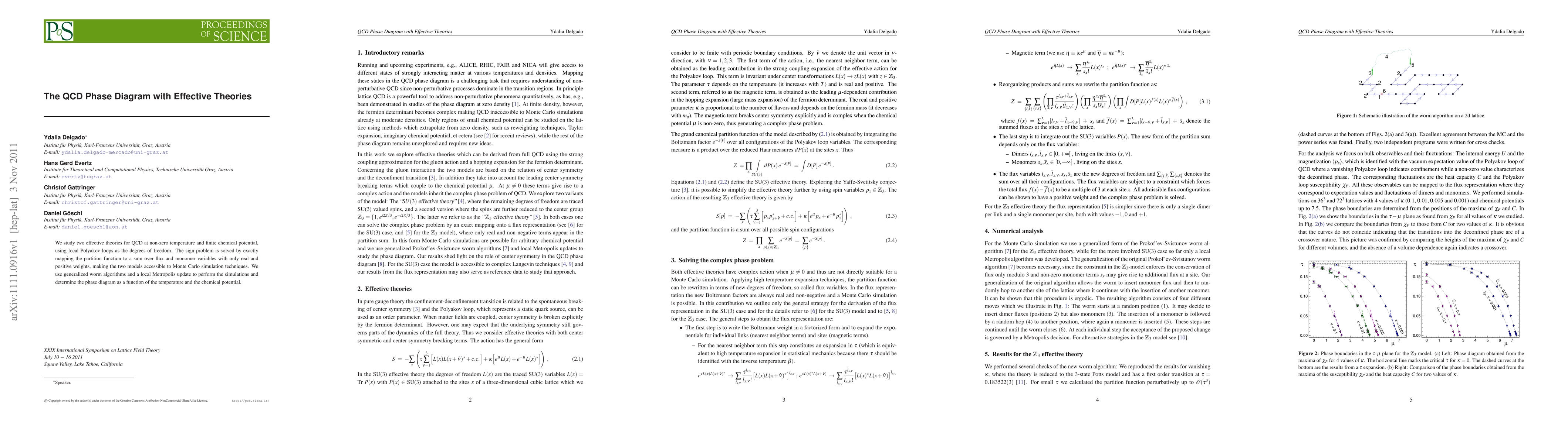 We study two effective theories for QCD at non-zero temperature and finite chemical potential, using local Polyakov loops as the degrees of freedom. The sign problem is solved by exactly mapping the partition function to a sum over flux and monomer variables with only real and positive weights, making the two models accessible to Monte Carlo simulation techniques. We use generalized worm algorithms and a local Metropolis update to perform the simulations and determine the phase diagram as a function of the temperature and the chemical potential.