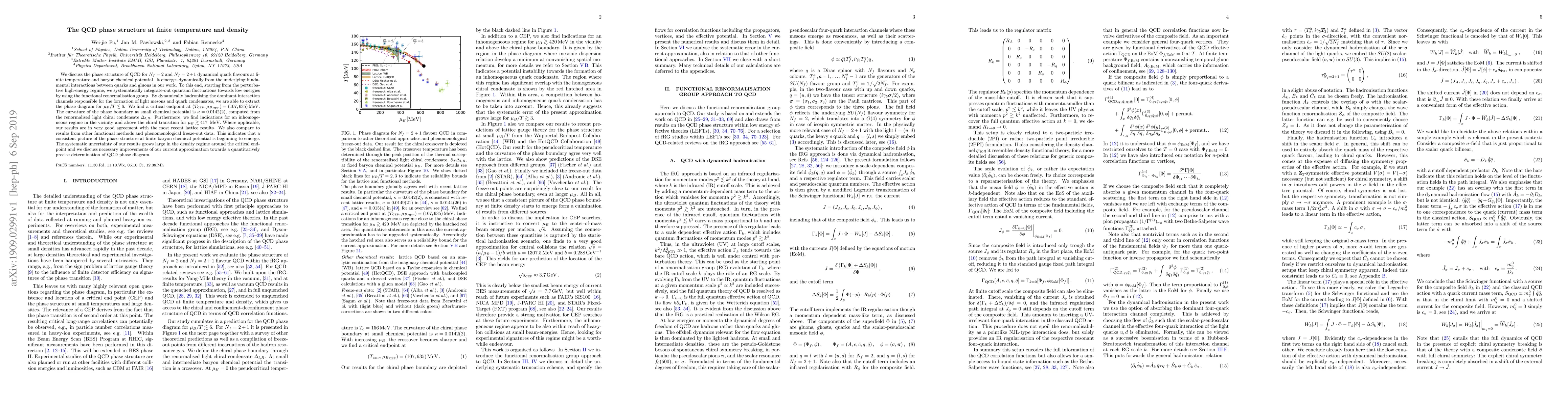 We discuss the phase structure of QCD for $N_f=2$ and $N_f=2+1$ dynamical quark flavours at finite temperature and baryon chemical potential. It emerges dynamically from the underlying fundamental interactions between quarks and gluons in our work. To this end, starting from the perturbative high-energy regime, we systematically integrate-out quantum fluctuations towards low energies by using the functional renormalisation group. By dynamically hadronising the dominant interaction channels responsible for the formation of light mesons and quark condensates, we are able to extract the phase diagram for $\mu_B/T \lesssim 6$. We find a critical endpoint at $(T_\text{CEP},{\mu_B}_{\text{CEP}})=(107, 635)\,\text{MeV}$. The curvature of the phase boundary at small chemical potential is $\kappa=0.0142(2)$, computed from the renormalised light chiral condensate $\Delta_{l,R}$. Furthermore, we find indications for an inhomogeneous regime in the vicinity and above the chiral transition for $\mu_B\gtrsim 417$ MeV. Where applicable, our results are in very good agreement with the most recent lattice results. We also compare to results from other functional methods and phenomenological freeze-out data. This indicates that a consistent picture of the phase structure at finite baryon chemical potential is beginning to emerge. The systematic uncertainty of our results grows large in the density regime around the critical endpoint and we discuss necessary improvements of our current approximation towards a quantitatively precise determination of QCD phase diagram.