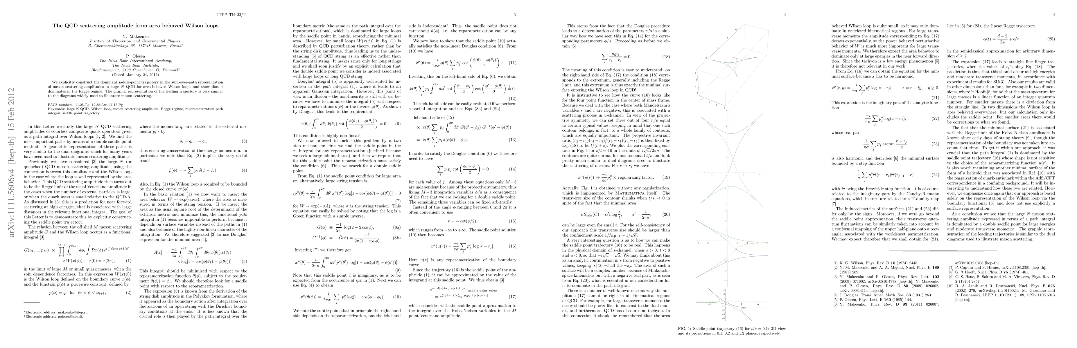 We explicitly construct the dominant saddle-point trajectory in the sum-over-path representation of meson scattering amplitudes in large $N$ QCD for area-behaved Wilson loops and show that it dominates in the Regge regime. The graphic representation of the leading trajectory is very similar to the diagrams widely used to illustrate meson scattering.
