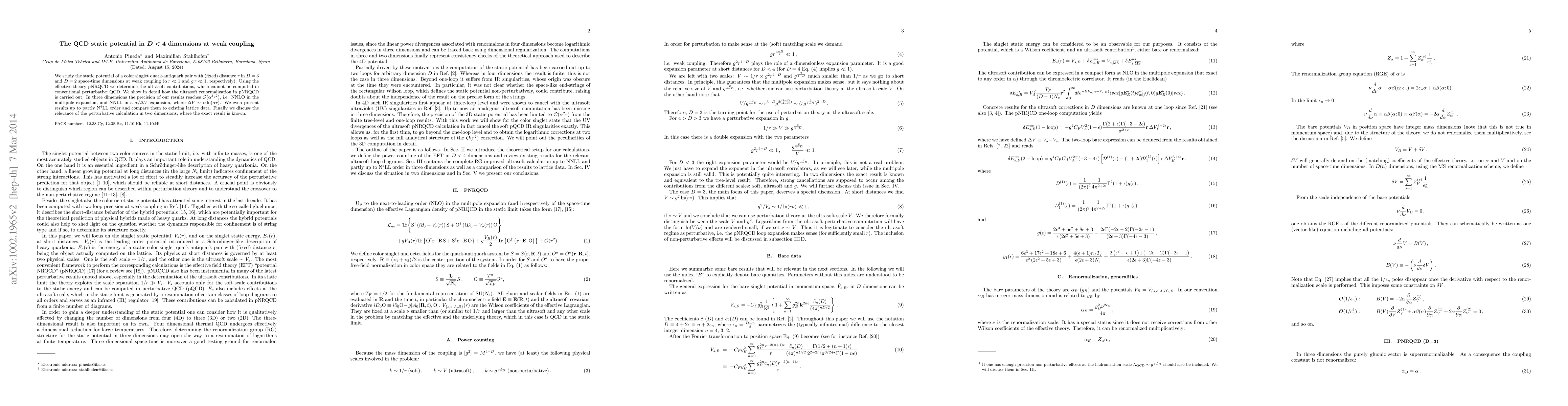 We study the static potential of a color singlet quark-antiquark pair with (fixed) distance r in D=3 and D=2 space-time dimensions at weak coupling (alpha r << 1 and g r << 1, respectively). Using the effective theory pNRQCD we determine the ultrasoft contributions, which cannot be computed in conventional perturbative QCD. We show in detail how the ultrasoft renormalization in pNRQCD is carried out. In three dimensions the precision of our results reaches O(alpha^3 r^2), i.e. NNLO in the multipole expansion, and NNLL in a alpha/DeltaV expansion, where DeltaV ~ alpha ln(alpha r). We even present results up to partly N^4LL order and compare them to existing lattice data. Finally we discuss the relevance of the perturbative calculation in two dimensions, where the exact result is known.
