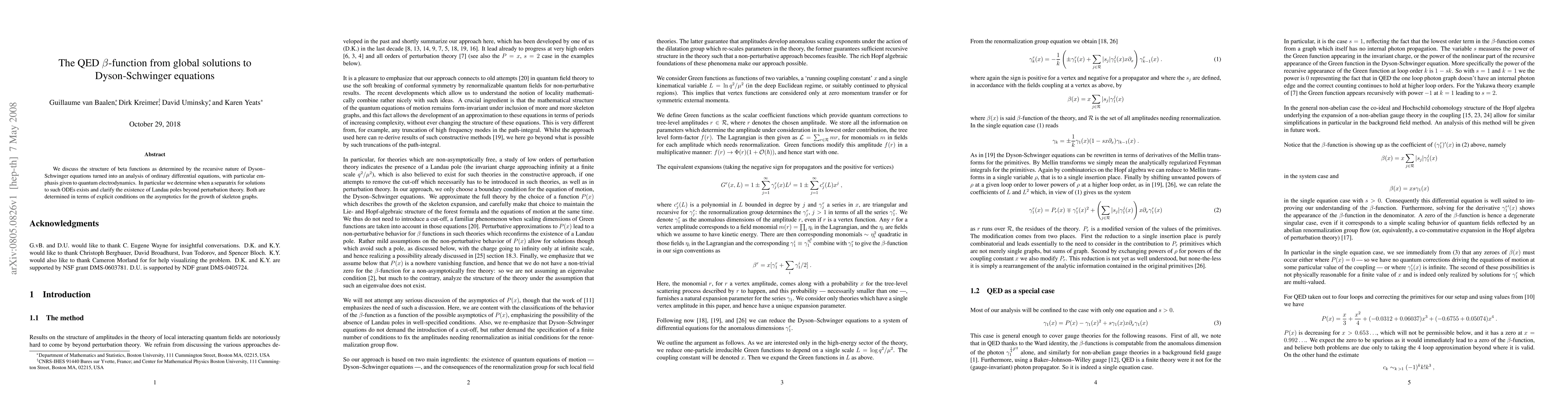 We discuss the structure of beta functions as determined by the recursive nature of Dyson--Schwinger equations turned into an analysis of ordinary differential equations, with particular emphasis given to quantum electrodynamics. In particular we determine when a separatrix for solutions to such ODEs exists and clarify the existence of Landau poles beyond perturbation theory. Both are determined in terms of explicit conditions on the asymptotics for the growth of skeleton graphs.