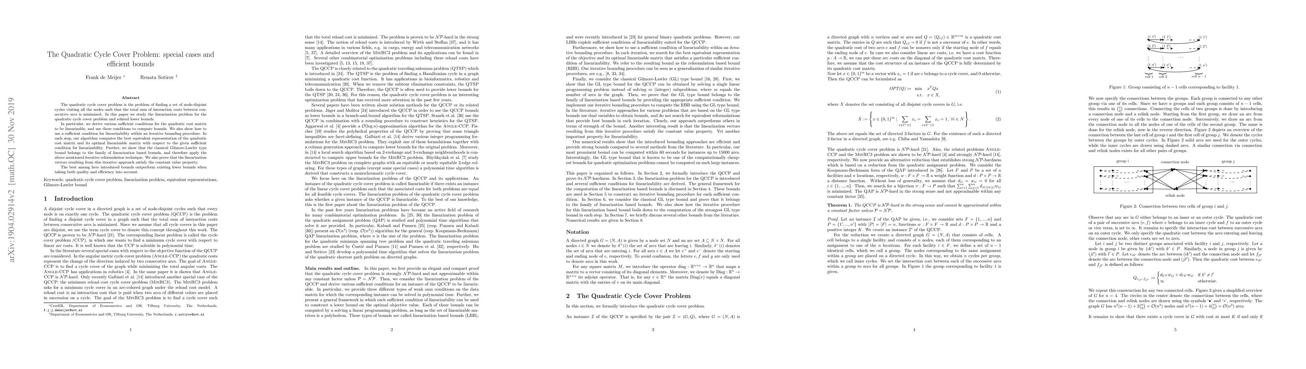 This paper investigates the quadratic cycle cover problem, focusing on linearization and efficient bounds. It introduces sufficient conditions for linearizability, uses these to compute improved bounds, and demonstrates an iterative bounding procedure that outperforms existing lower bounds in both quality and efficiency.
