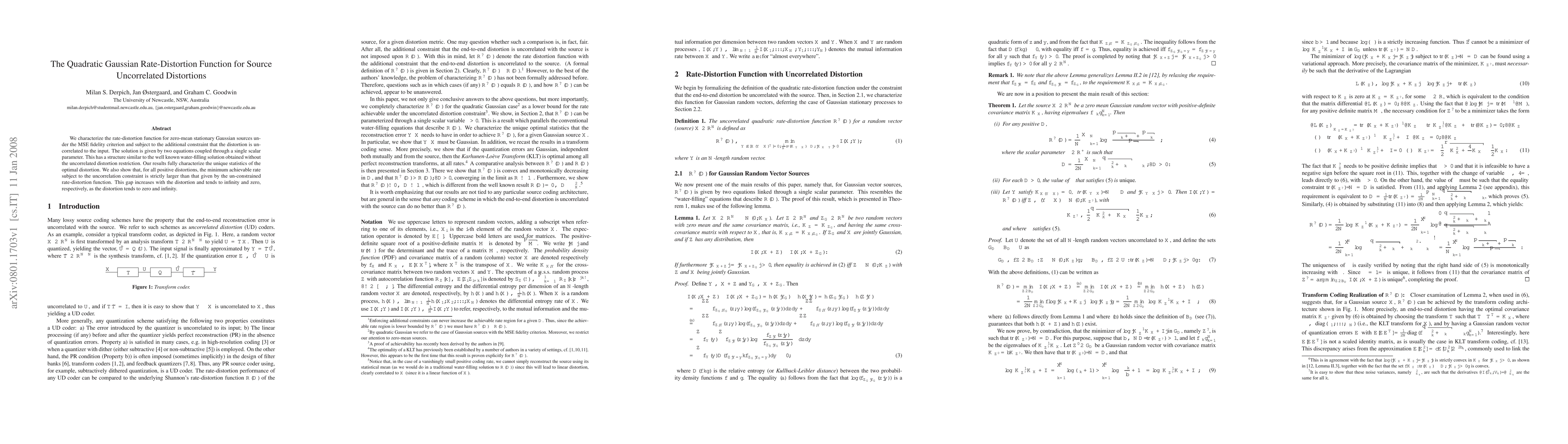 The paper characterizes the rate-distortion function for Gaussian sources with uncorrelated distortion constraints, showing a unique statistics of optimal distortion and a larger minimum achievable rate than without constraint.