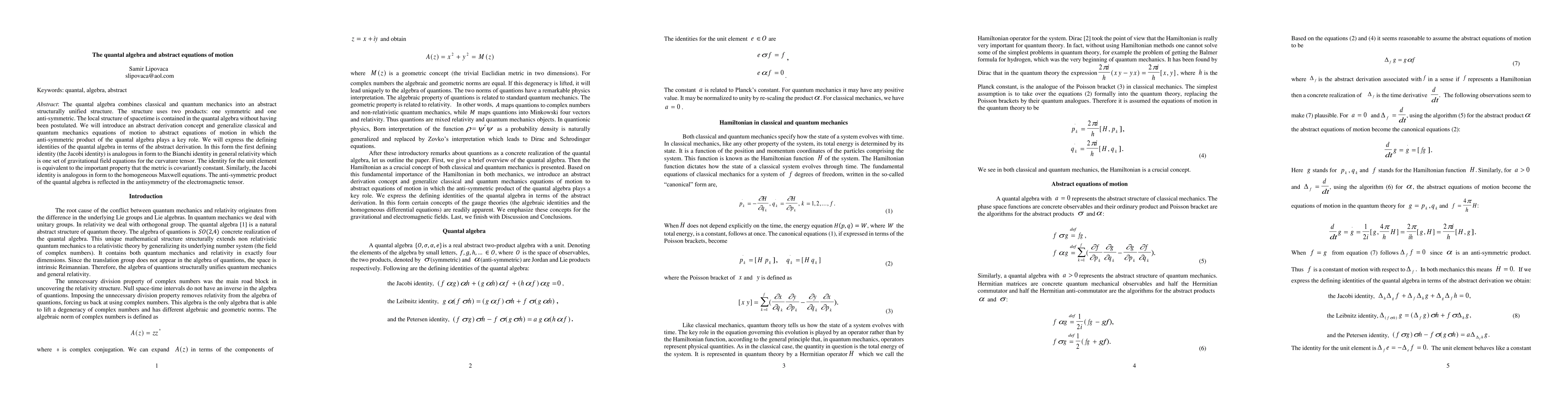 The quantal algebra combines classical and quantum mechanics into an abstract structurally unified structure. The structure uses two products: one symmetric and one anti-symmetric. The local structure of spacetime is contained in the quantal algebra without having been postulated. We will introduce an abstract derivation concept and generalize classical and quantum mechanics equations of motion to abstract equations of motion in which the anti-symmetric product of the quantal algebra plays a key role. We will express the defining identities of the quantal algebra in terms of the abstract derivation. In this form the first defining identity (the Jacobi identity) is analogous in form to the Bianchi identity in general relativity which is one set of gravitational field equations for the curvature tensor. The identity for the unit element is equivalent to the important property that the metric is covariantly constant. Similarly, the Jacobi identity is analogous in form to the homogeneous Maxwell equations. The anti-symmetric product of the quantal algebra is reflected in the antisymmetry of the electromagnetic tensor.