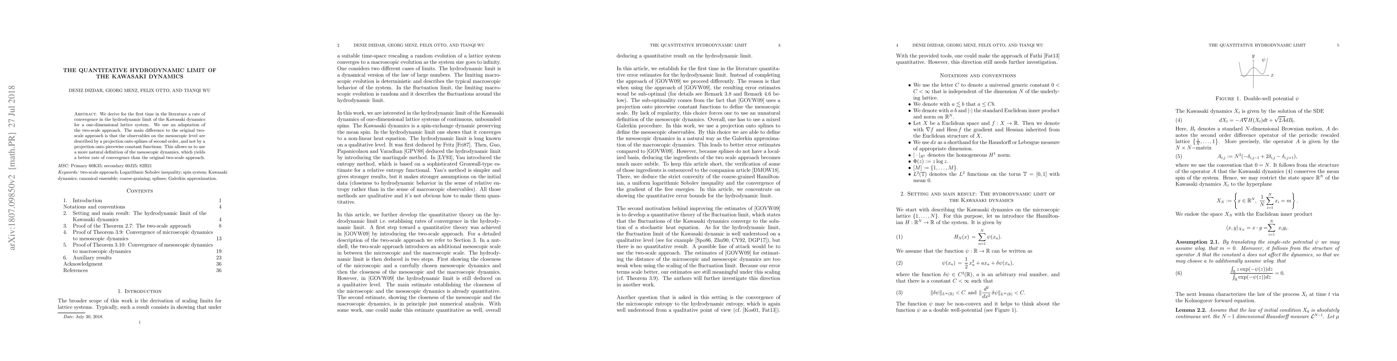 Researchers derived a rate of convergence for the Kawasaki dynamics in a one-dimensional lattice system, improving upon previous methods with a more natural definition of mesoscopic dynamics.