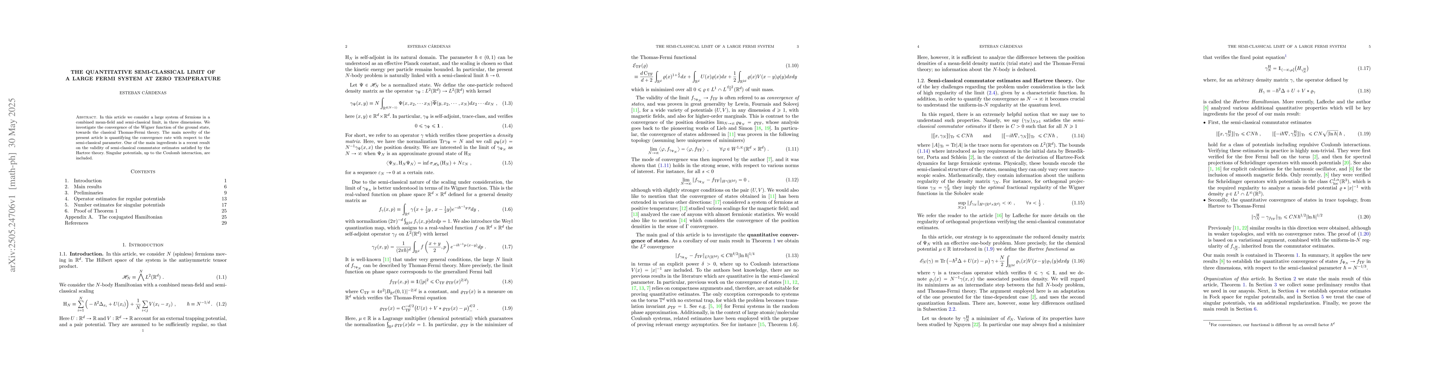 Researchers study how a large group of fermions (small particles with half-integer spin) behave at zero temperature, comparing their behavior to classical physics theories. They find that the behavior of these fermions converges to certain classical theories at a specific rate.