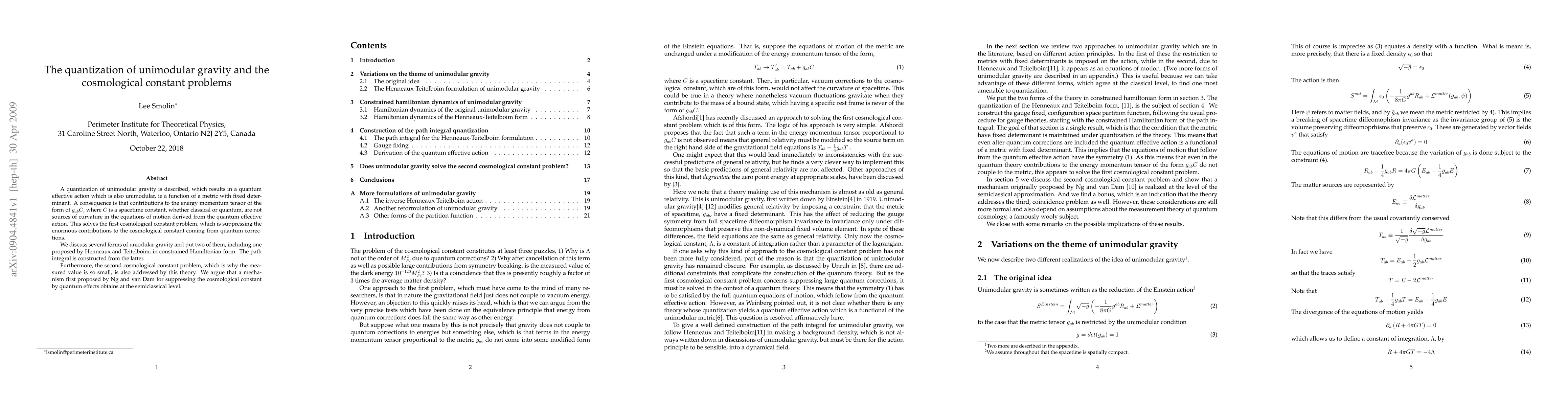 This paper quantizes unimodular gravity, resulting in a unimodular quantum effective action that resolves the first cosmological constant problem by excluding metric-spacetime constant contributions from curvature equations. It also addresses the second problem by employing a mechanism to naturally explain the small observed cosmological constant.