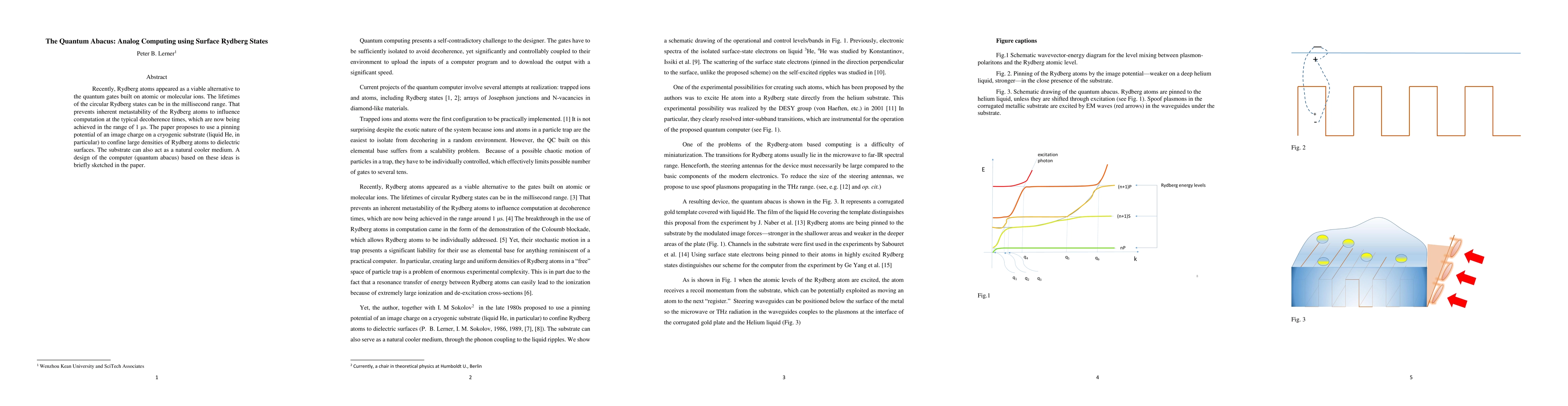 Recently, Rydberg atoms appeared as a viable alternative to the quantum gates built on atomic or molecular ions. The lifetimes of the circular Rydberg states can be in the millisecond range. That prevents inherent metastability of the Rydberg atoms to influence computation at the typical decoherence times, which are now being achieved in the range of 1 ms. The paper proposes to use a pinning potential of an image charge on a cryogenic substrate (liquid He, in particular) to confine large densities of Rydberg atoms to dielectric surfaces. The substrate can also act as a natural cooler medium. A design of the computer (quantum abacus) based on these ideas is briefly sketched in the paper.
