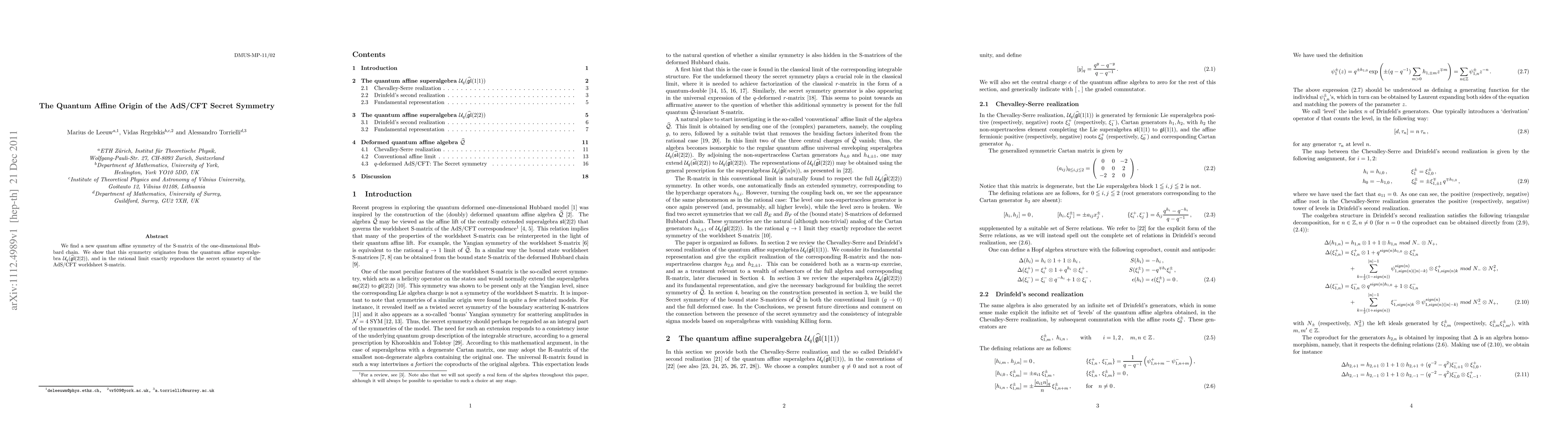 Summary: This paper identifies a new quantum affine symmetry in the one-dimensional Hubbard chain's S-matrix, which stems from the quantum affine superalgebra U_q(gl(2|2)), and aligns with the secret symmetry of the AdS/CFT correspondence in its rational limit.