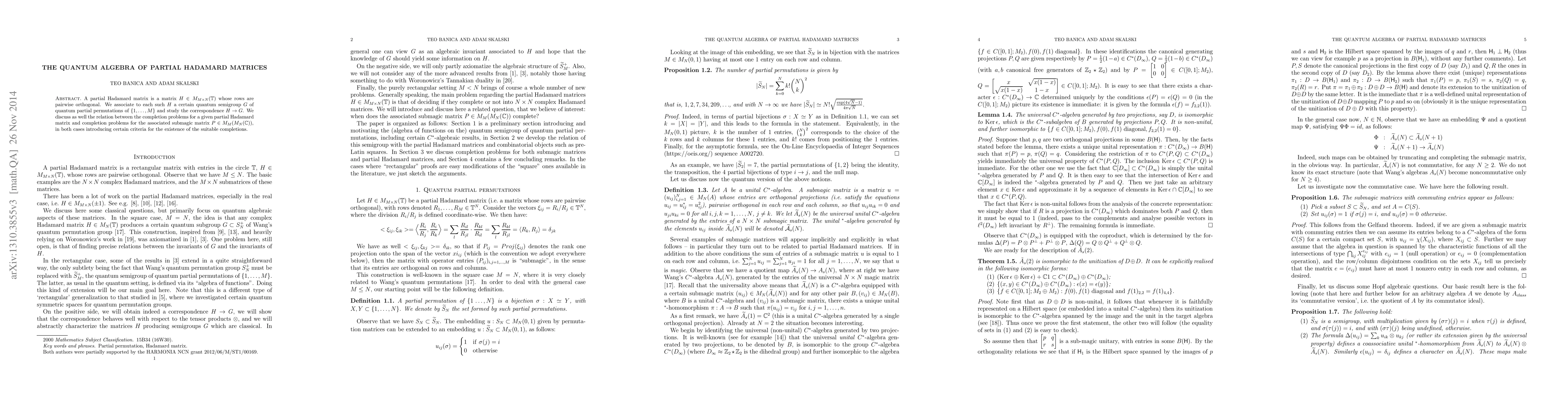 This paper explores the quantum algebra of partial Hadamard matrices, linking them to quantum semigroups of partial permutations, and investigates the completion criteria for both the matrices and their associated submagic matrices.