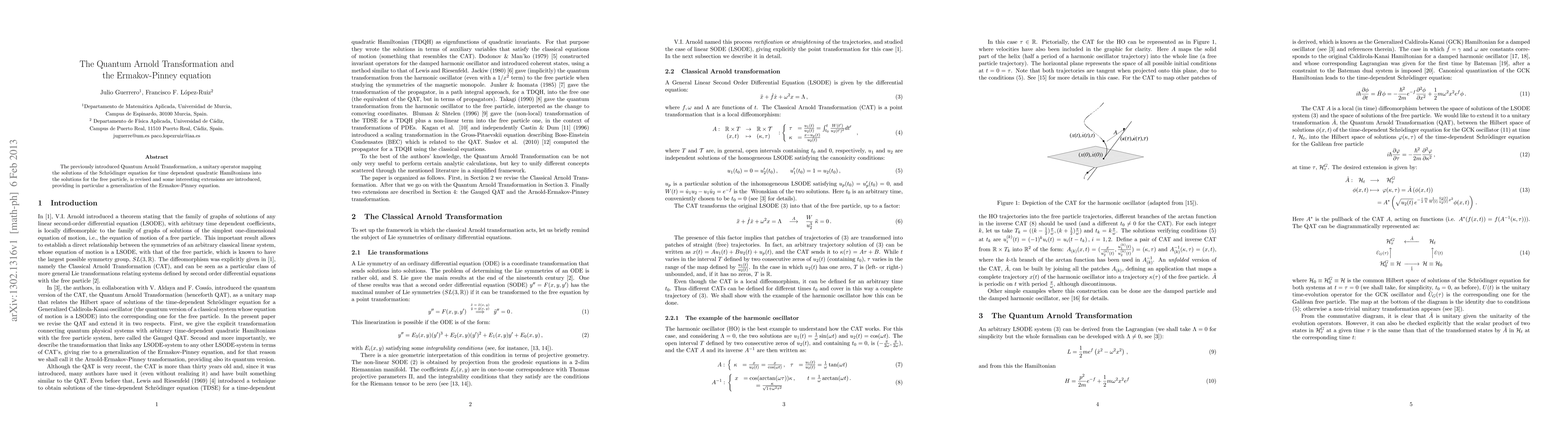 The paper revises the Quantum Arnold Transformation, a unitary operator that maps solutions of time-dependent quadratic Hamiltonian Schrödinger equations to free particle solutions, and introduces extensions including a generalization of the Ermakov-Pinney equation.
